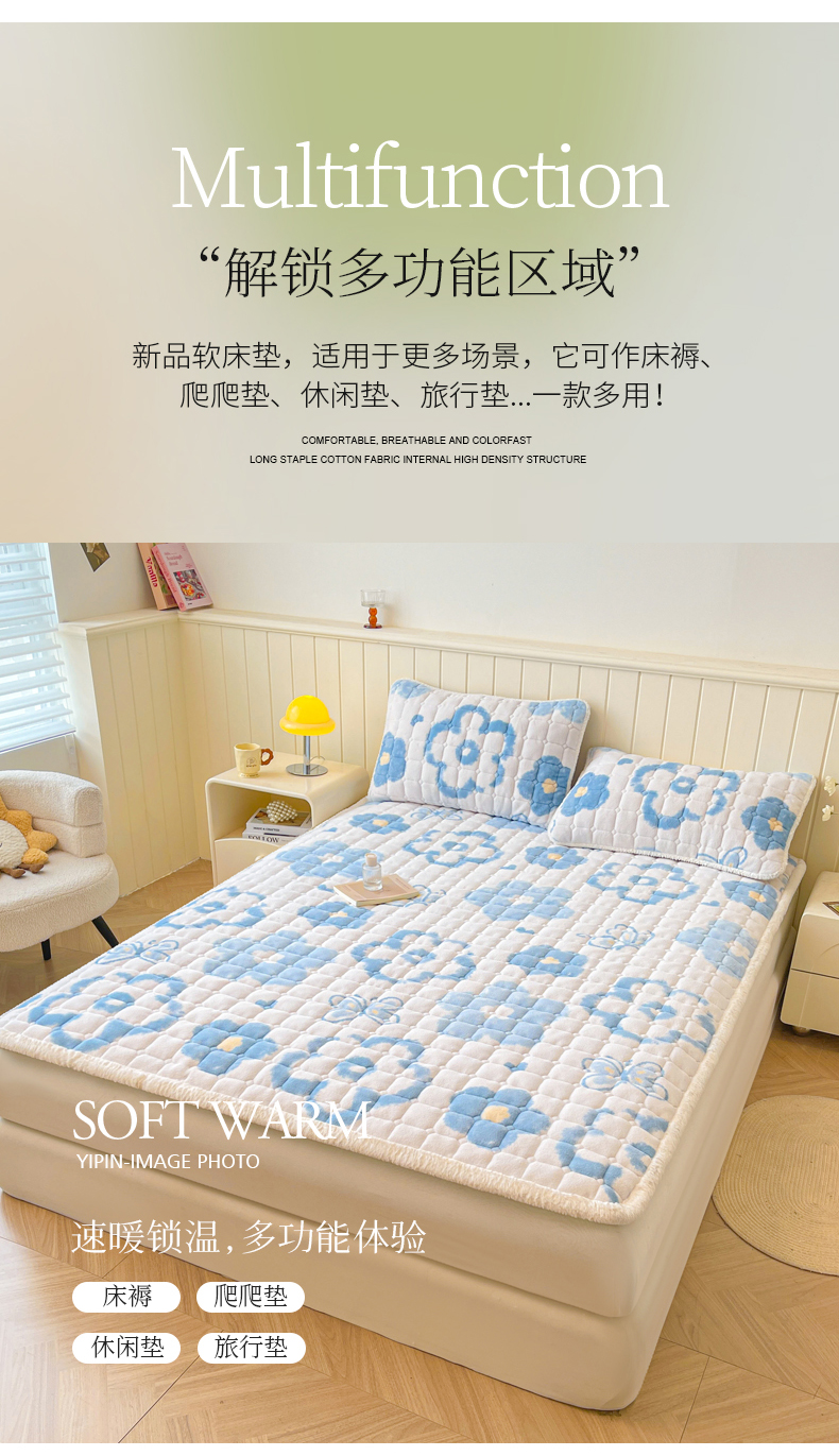 床垫/床褥 > (总)LIFE.丽芙 2025秋冬新款牛奶绒加厚夹棉床垫床护垫单件印花卡通小清新床褥床垫子三件套