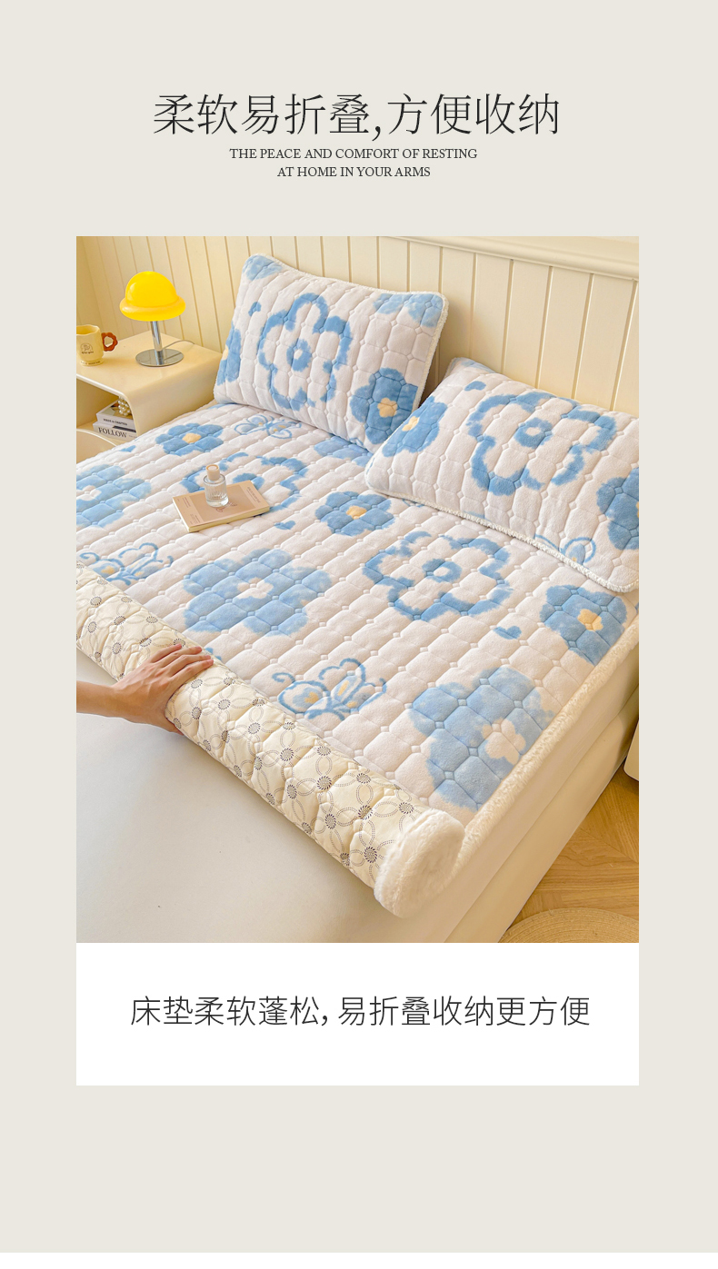 商品名称:(总)LIFE.丽芙 2025秋冬新款牛奶绒加厚夹棉床垫床护垫单件印花卡通小清新床褥床垫子三件套