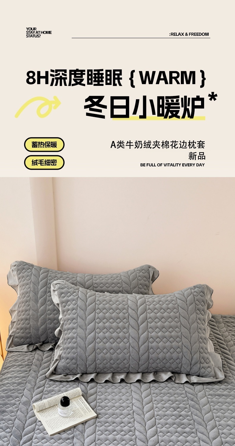 商品名称:梦舒羽 2025新款牛奶绒花边夹棉枕套单人宿舍枕芯套枕头套一对-轻奢 花边轻奢款-星辰灰