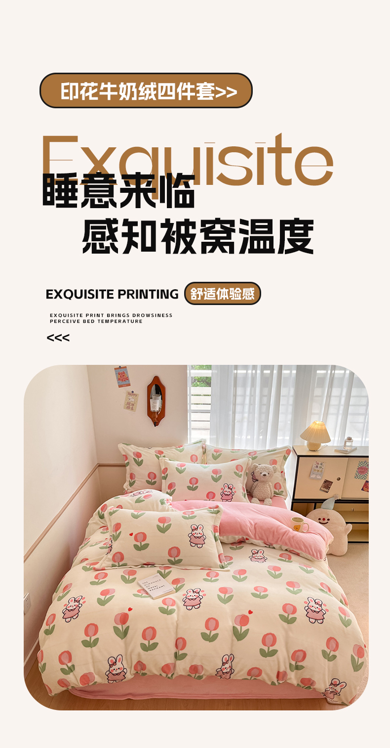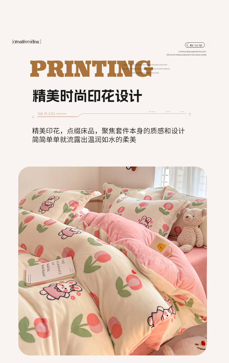 当前位置: 91家纺网 > 商品网购 > 床品套件 > 四件套 > 牛奶绒四件套 > 寻米 2025新款高克重加厚保暖牛奶绒四件套-第二批 郁香小兔