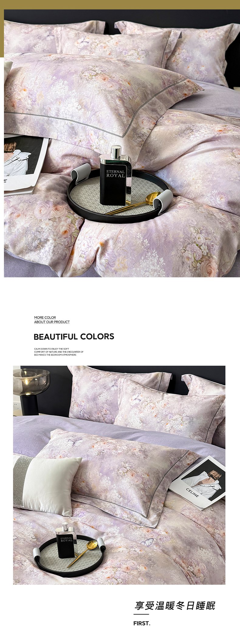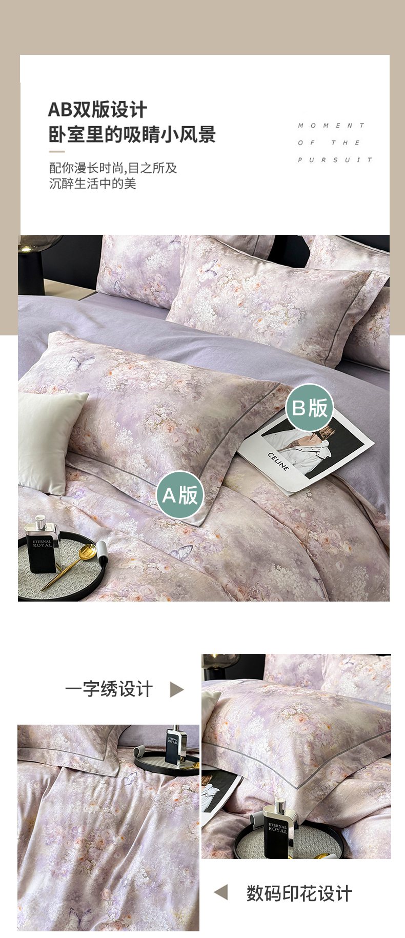 当前位置: 91家纺网 > 商品网购 > 床品套件 > 四件套 > 普通磨毛四件套 > 梵克保罗 2025秋冬新款数码印花全棉磨毛单被套三件套四件套系列 雾野花蝶-紫