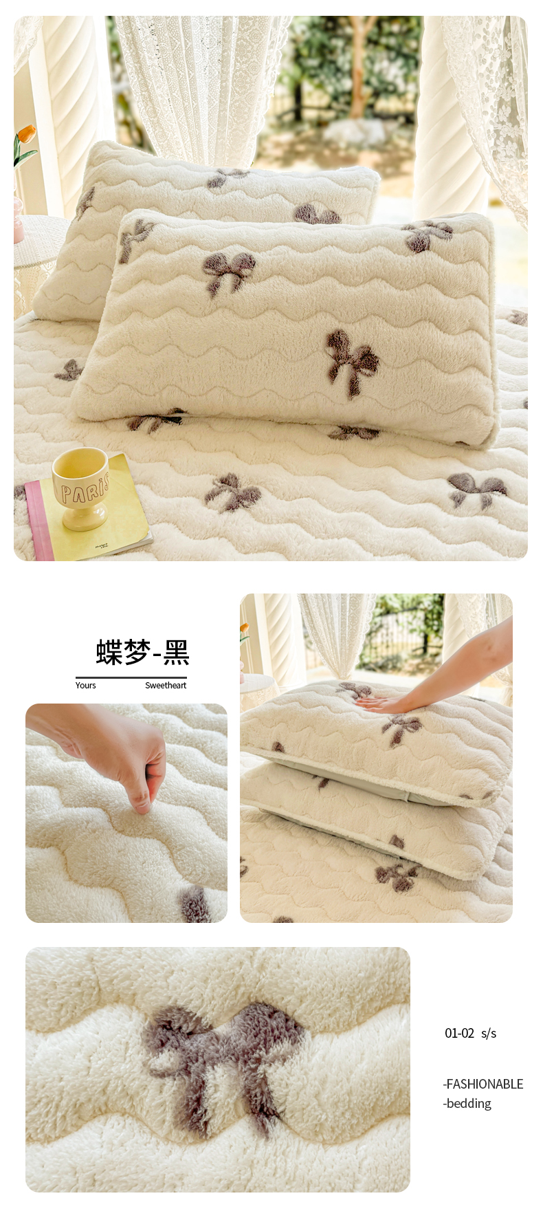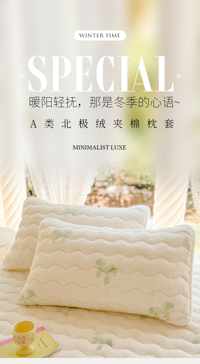 商品名称:LIFE.丽芙 2025秋冬新款A类北极绒保暖加厚夹棉枕套 蝶梦-绿