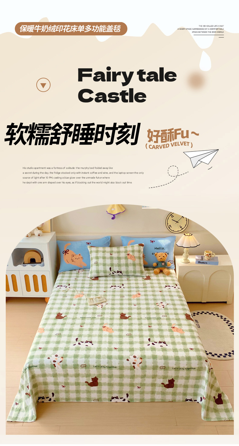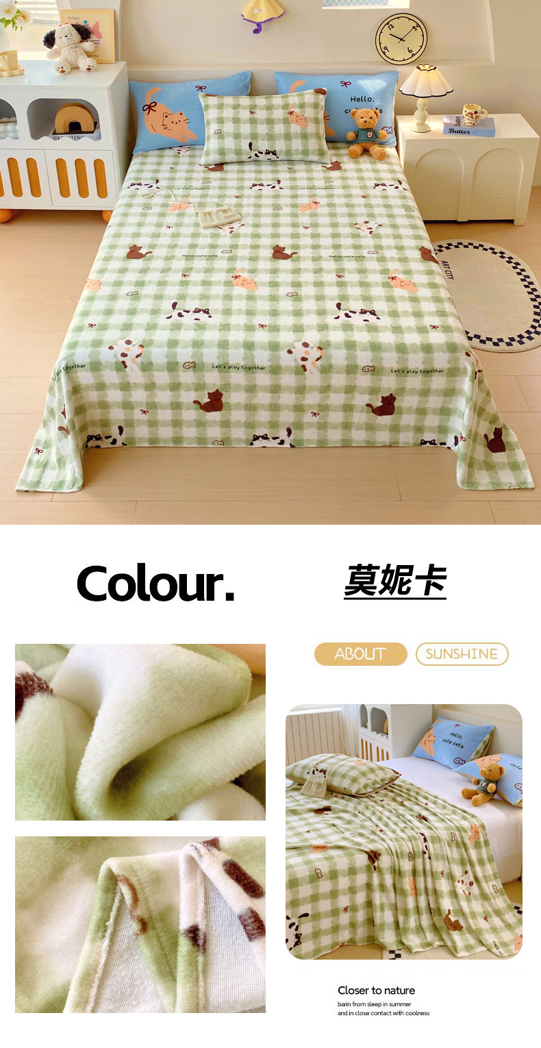 • 91家纺网 家纺一手货源 找家纺 葡萄家 2025年新款牛奶绒印花单床单萌系卡通床单款 莫妮卡