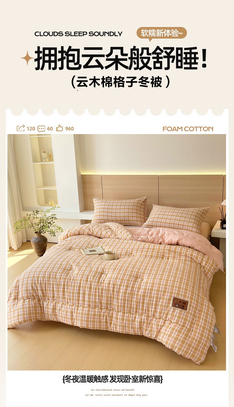 • 91家纺网 家纺一手货源 找家纺 梵克保罗 2025秋冬新款10A抗菌云格子春秋被冬被被芯跨境外贸 蓝灰格