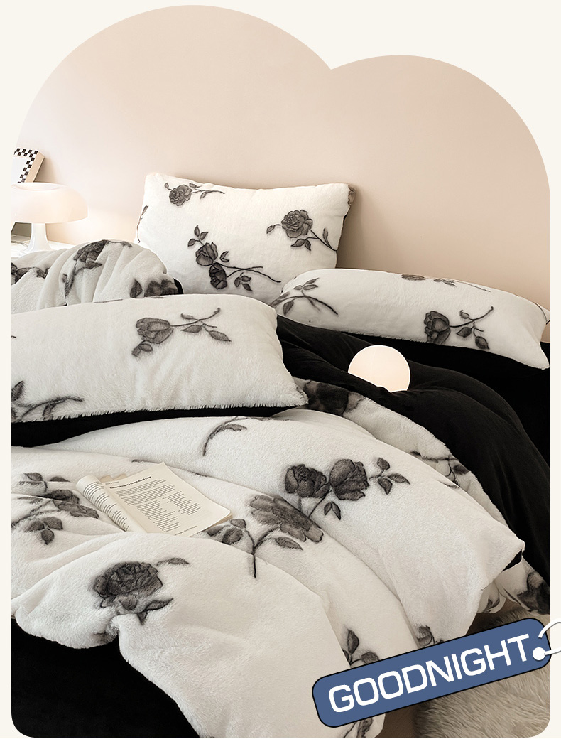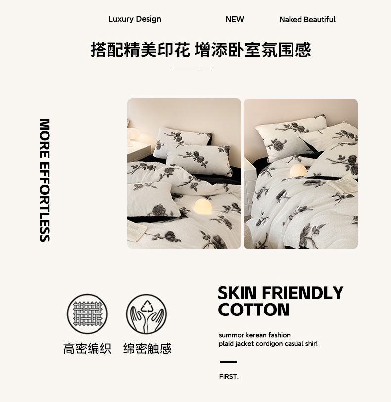 当前位置: 91家纺网 > 商品网购 > 床品套件 > 四件套 > 牛奶绒四件套 > 安哆啦家纺 2025新款高克重兔毛绒印花牛奶绒四件套 黑玫瑰