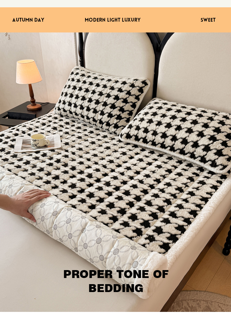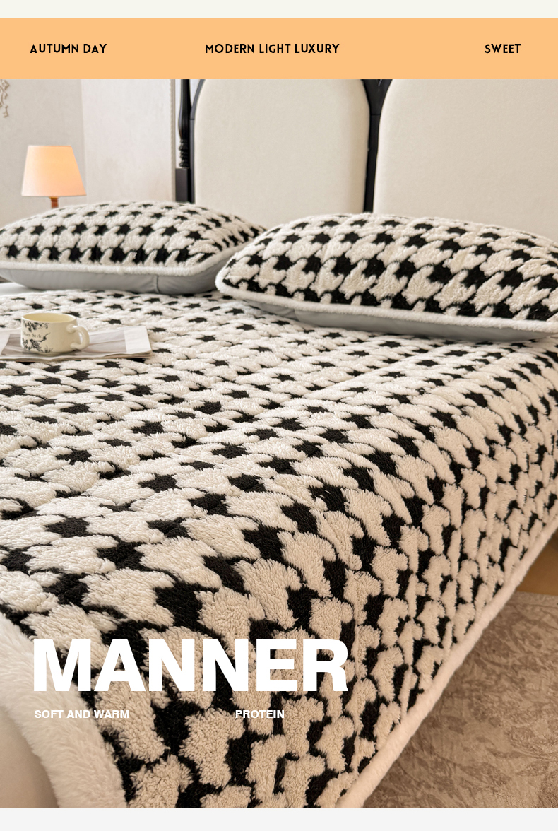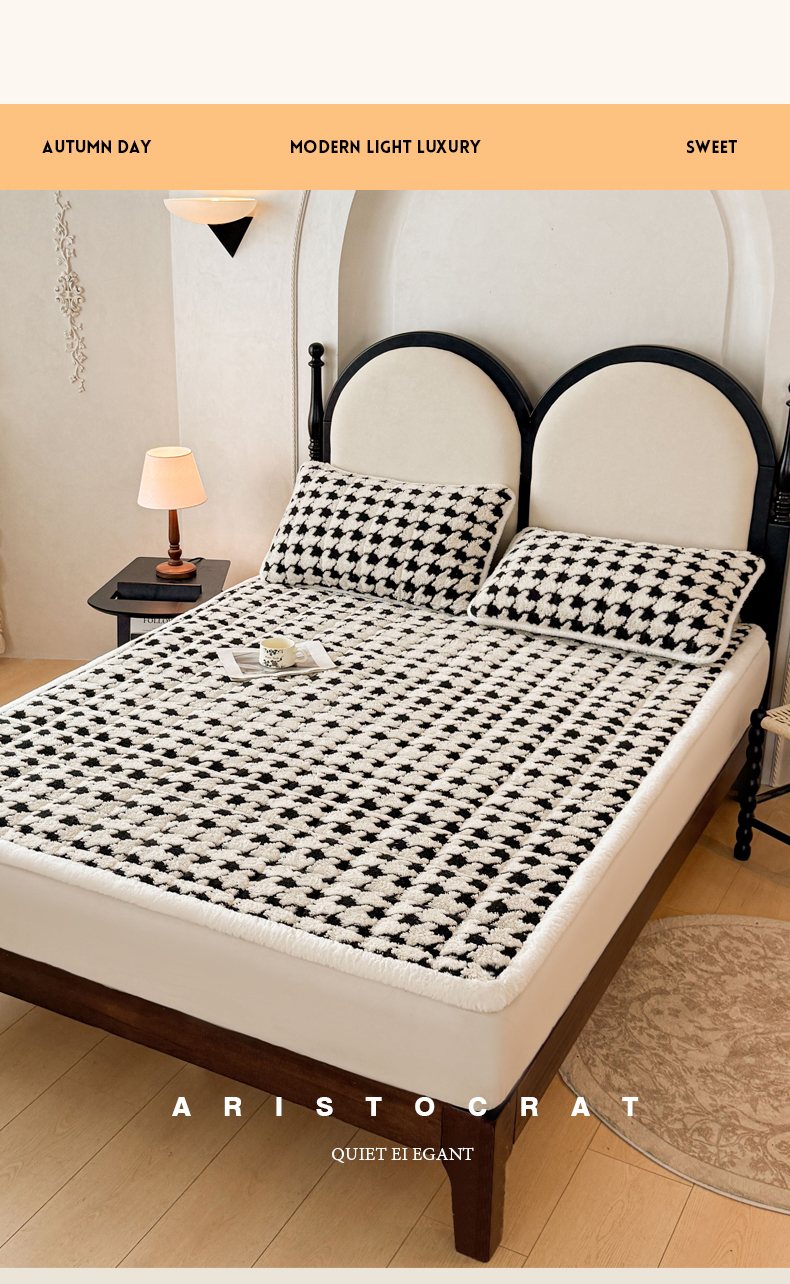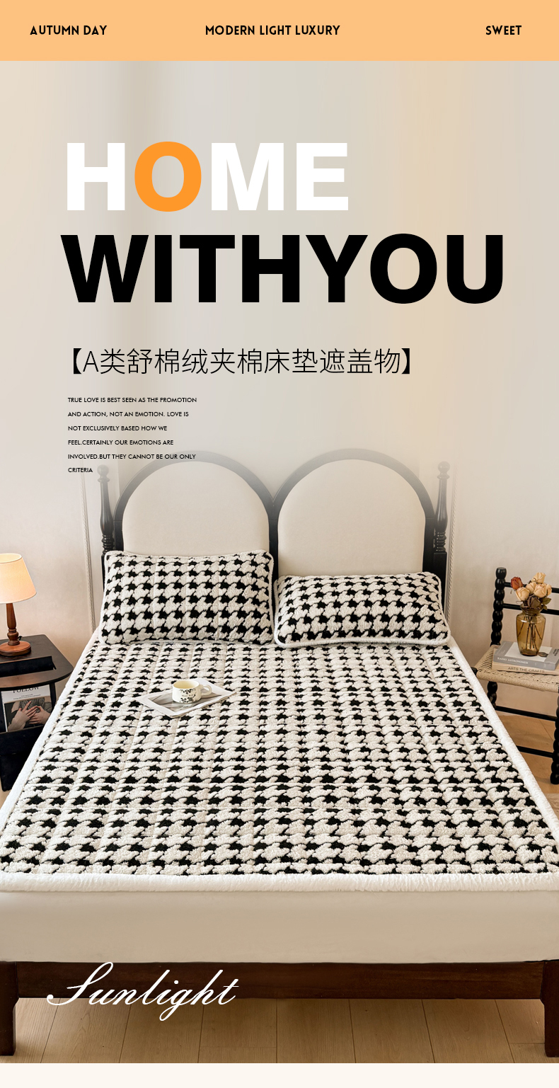 • 91家纺网 家纺一手货源 找家纺 LIFE.丽芙 2025秋冬新款色纱提花舒棉绒加厚夹棉床垫床护垫单件简约床褥床垫子三件套 千鸟格-黑白