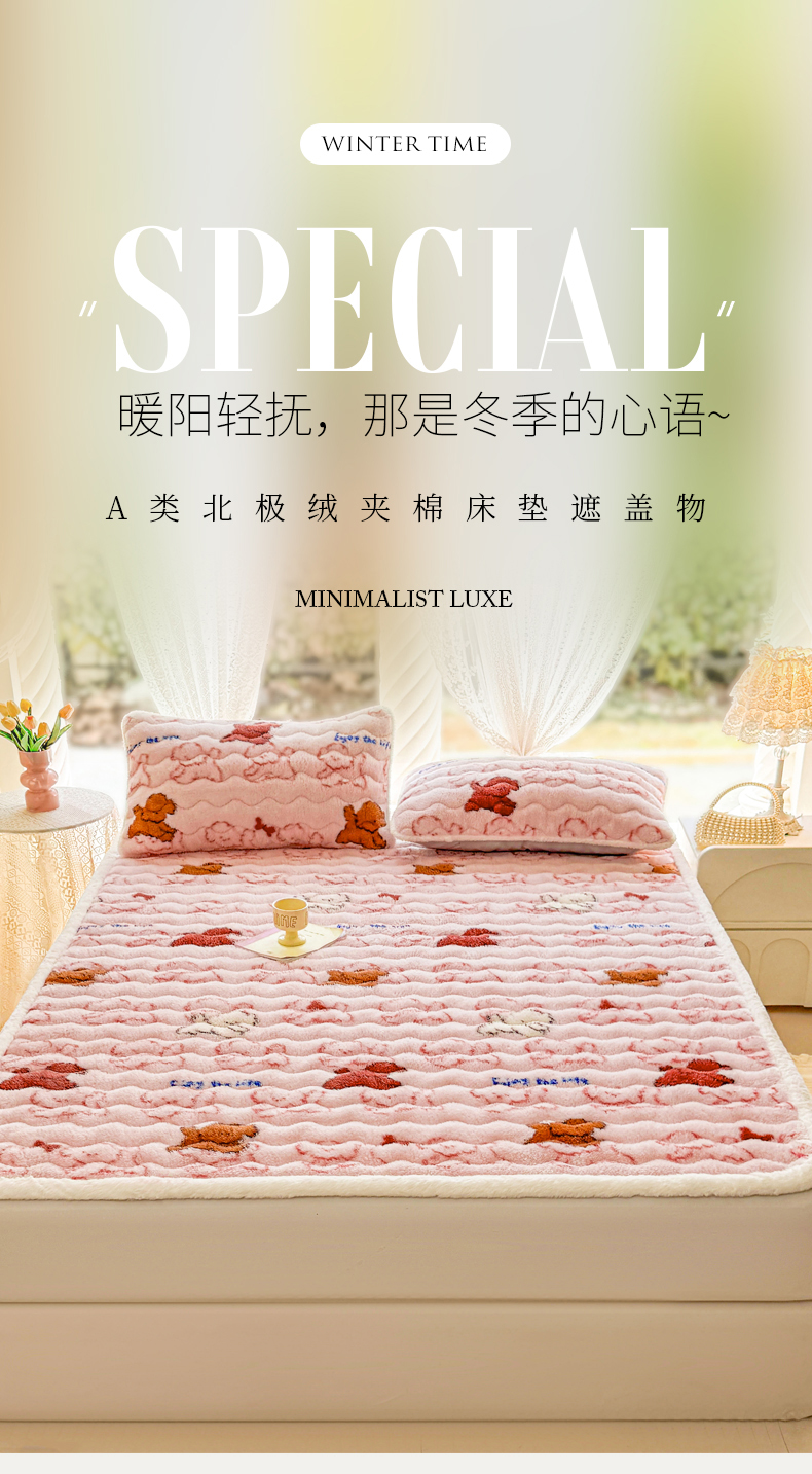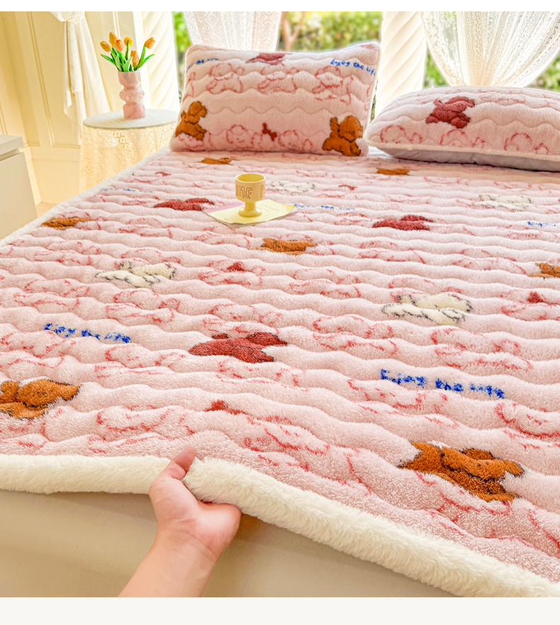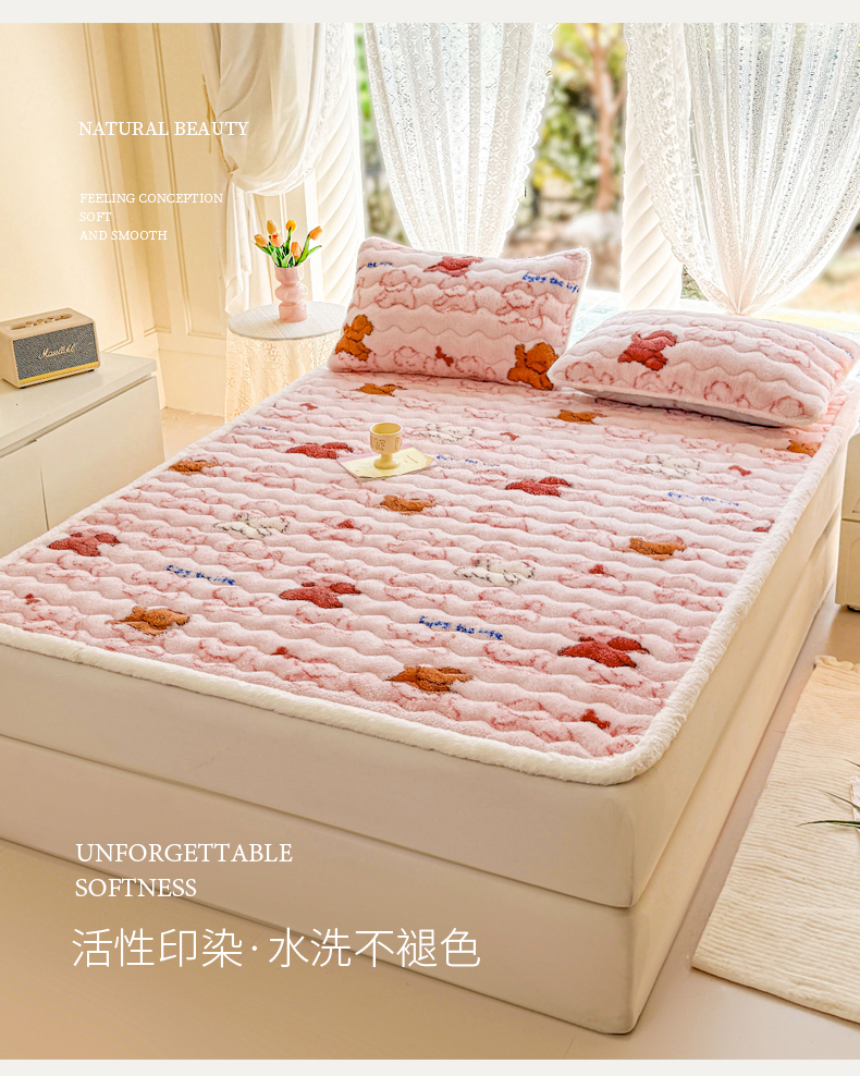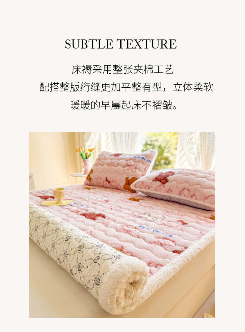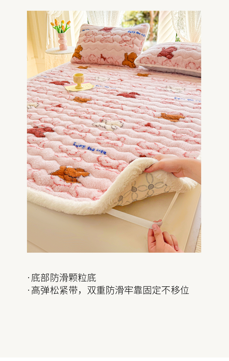 当前位置: 91家纺网 > 商品网购 > 床垫/床褥 > LIFE.丽芙 2025秋冬新款北极绒加厚夹棉床垫床护垫单件牛奶绒床褥床垫子三件套 追逐-粉