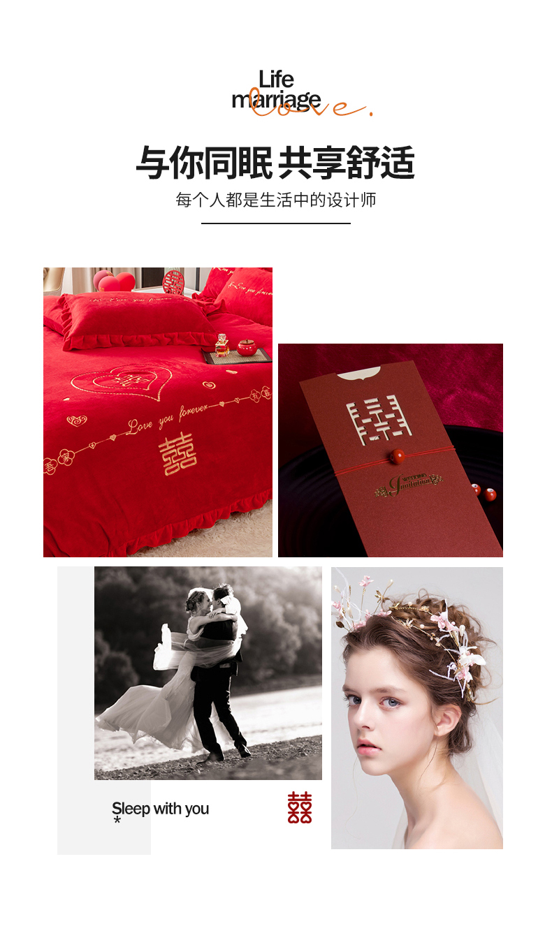 (总)银石 2025新款230克全消光牛奶绒婚庆大红高克重四件套,浪漫约定,爱之梦,百年好合,龙凤呈祥,喜结良缘,心心相印