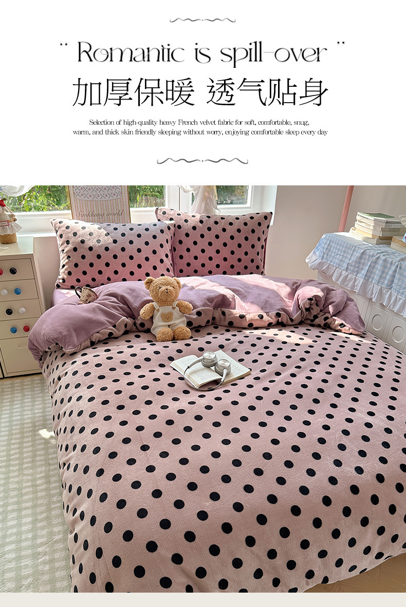 当前位置: 91家纺网 > 商品网购 > 床品套件 > 四件套 > 牛奶绒四件套 > 优选良品 2025新款小清新加厚高克重牛奶绒四件套直播热款电商热款波利圆点-紫