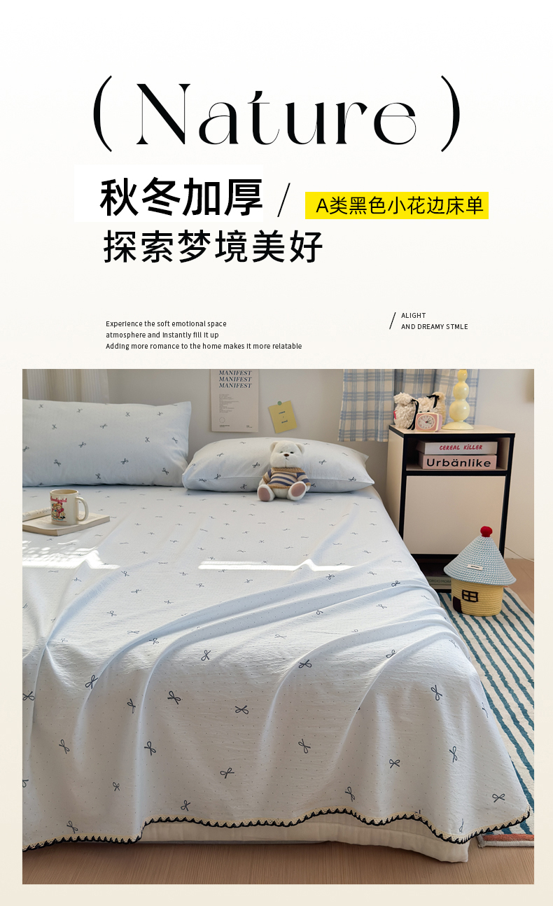 当前位置: 91家纺网 > 商品网购 > 床品套件 > 三件套 > 沐芷 2025 秋冬加厚床单高克重双层纱黑色小花边被单床单三件套 波点蓝结