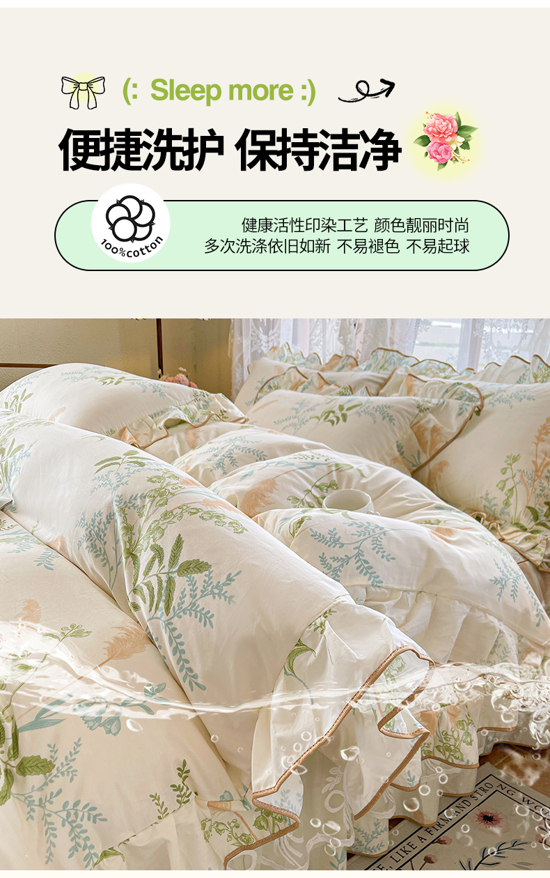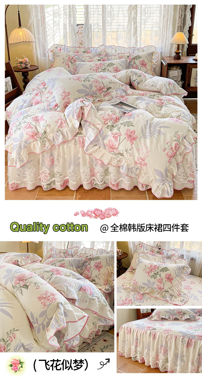 当前位置: 91家纺网 > 商品网购 > 床品套件 > 四件套 > 其它四件套 > 宜凡家纺 2025新款全棉韩版床裙四件套 花意满园