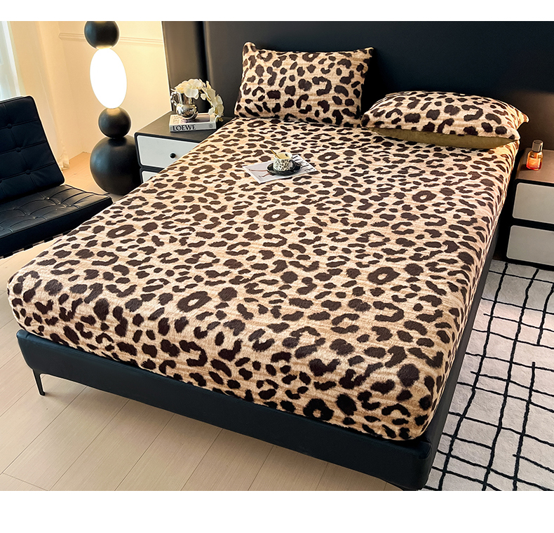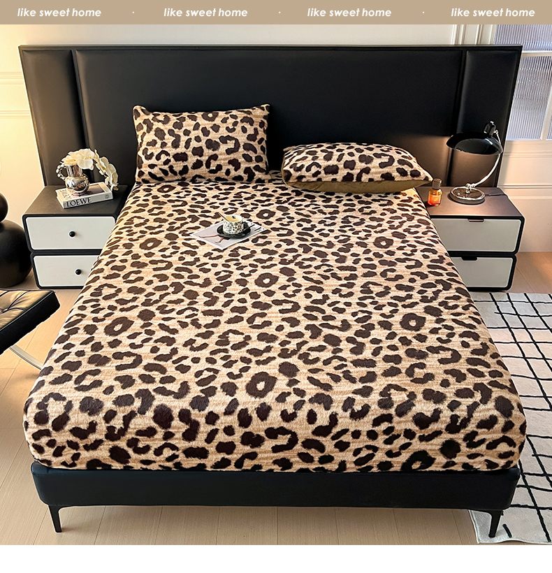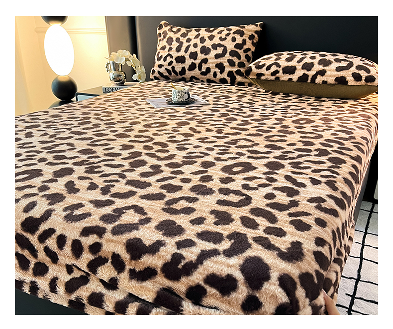 乐窝家纺仓储 2025新款亲肤加厚保暖兔毛绒牛奶绒单品床笠单件床笠-美拉德 美拉德-豹纹