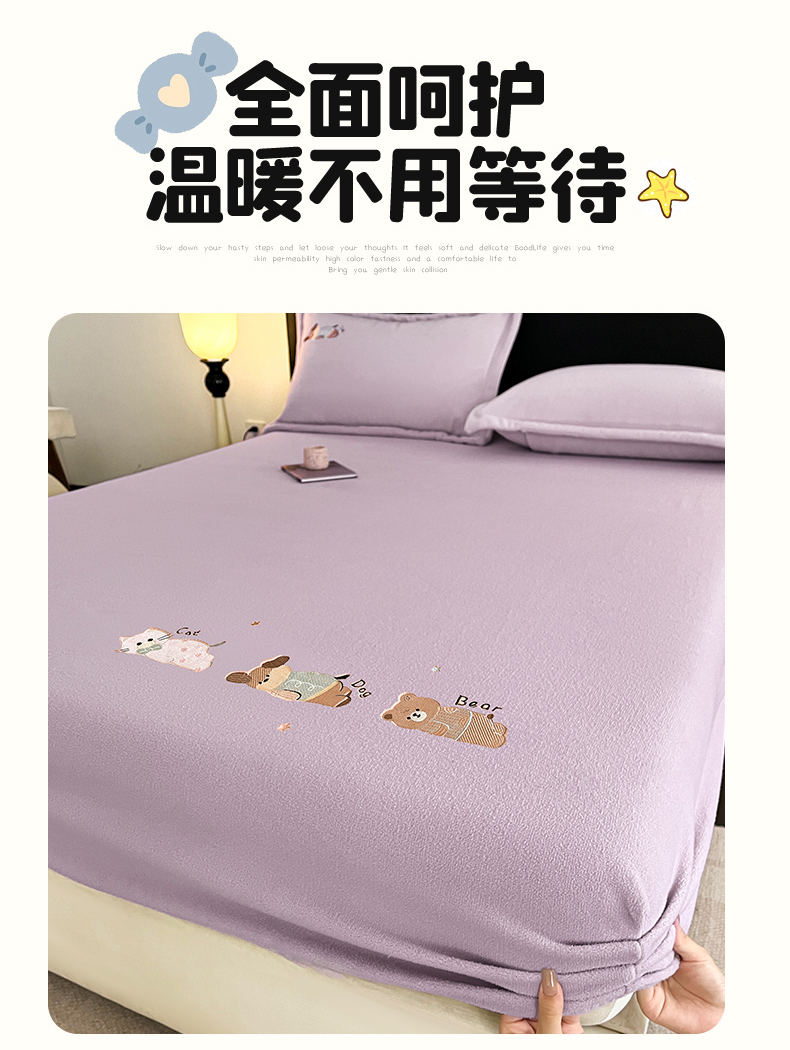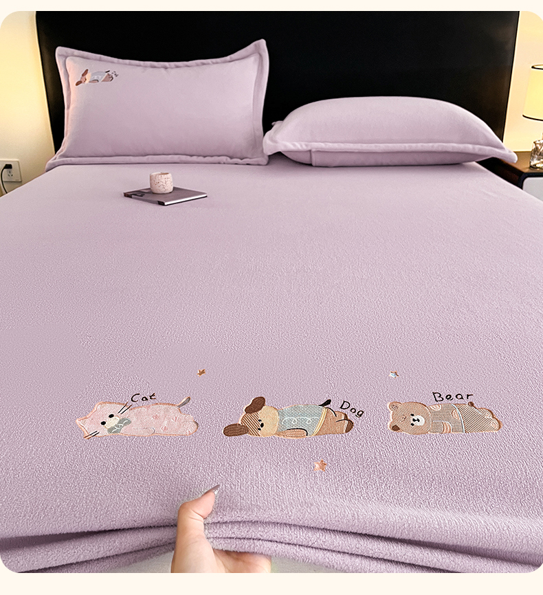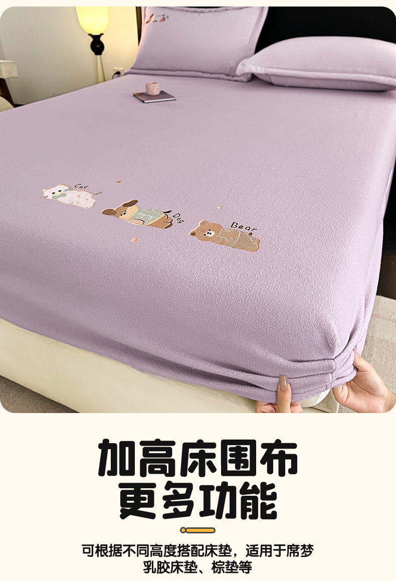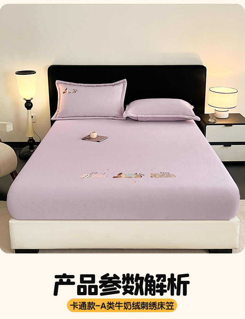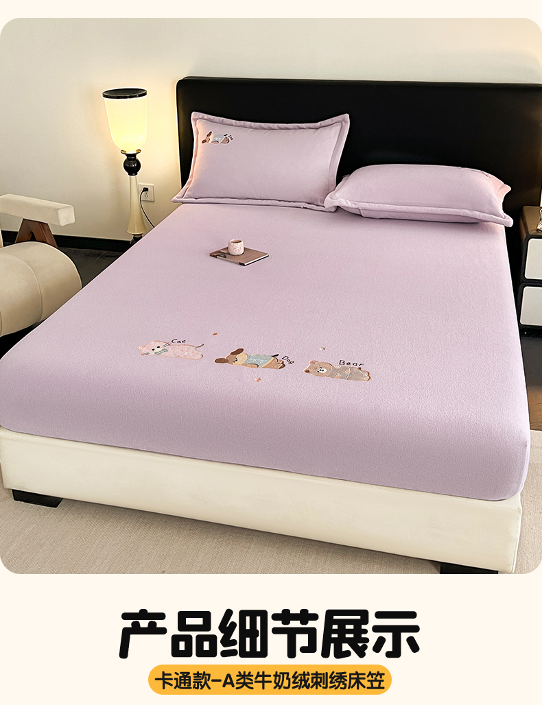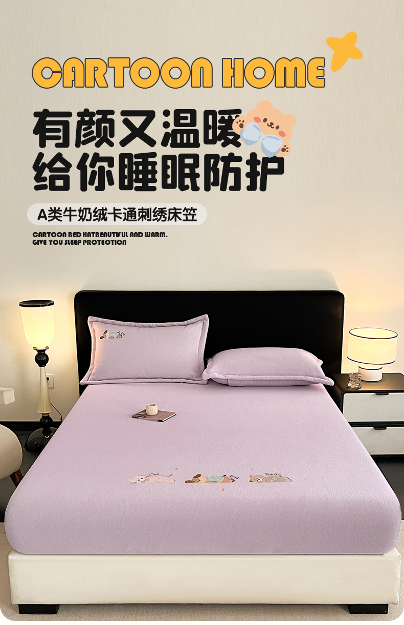 笙意家纺 2025新款A类牛奶绒海獭绒卡通刺绣床笠 卡通-月光紫