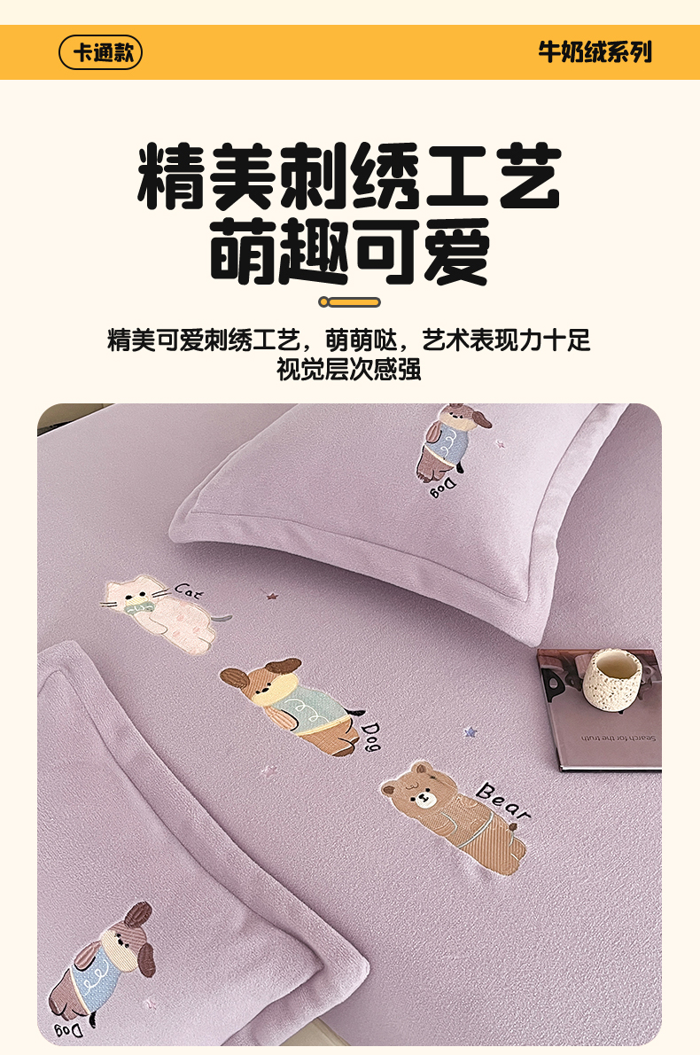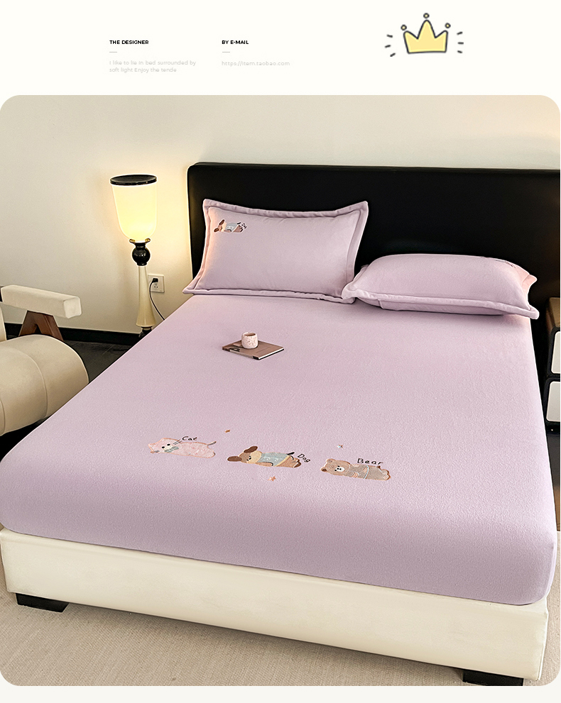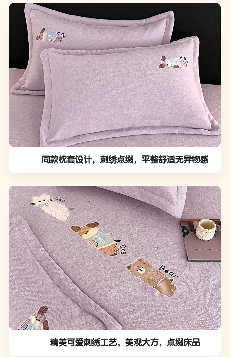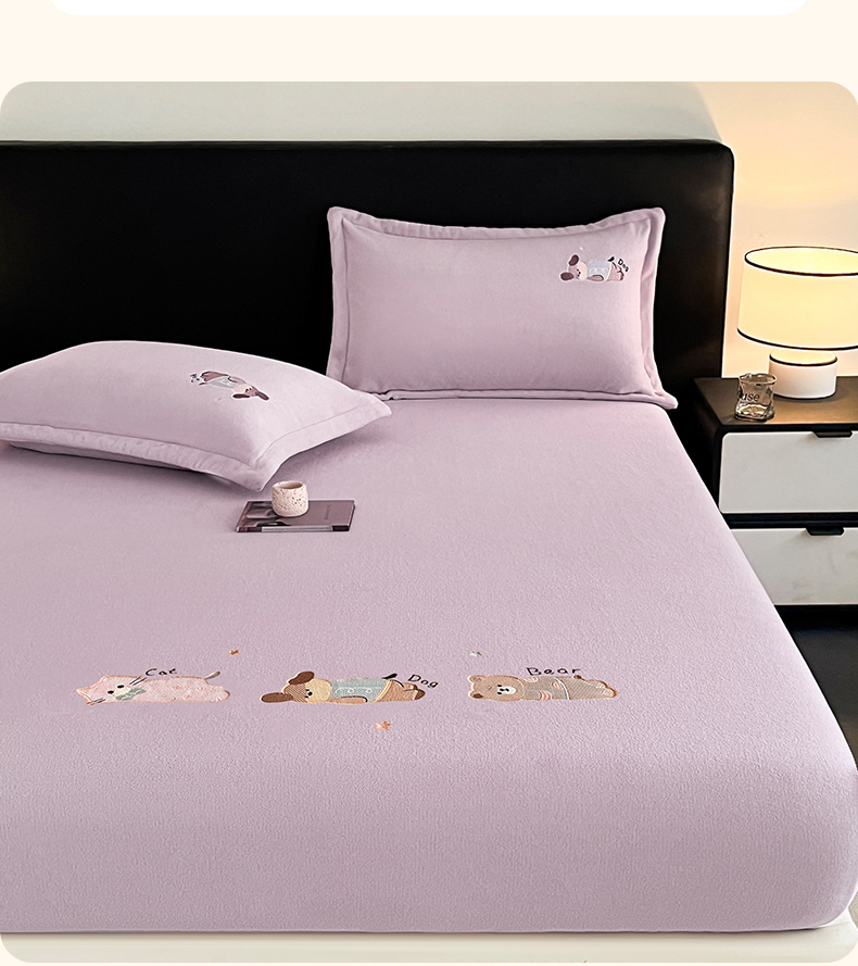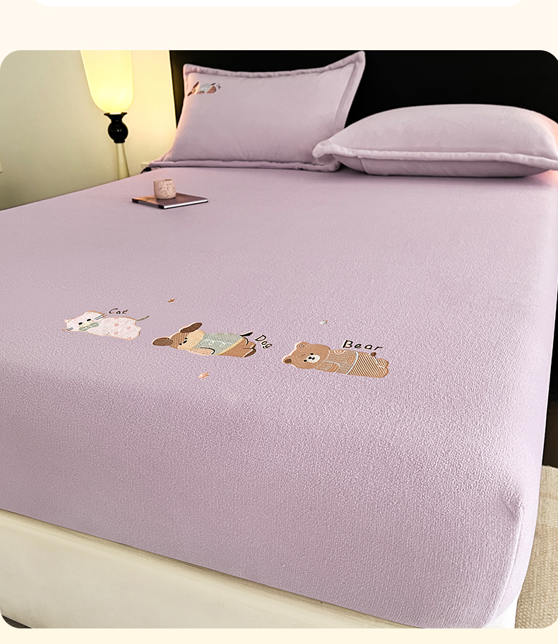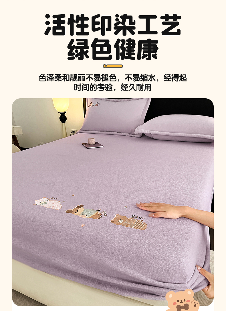 笙意家纺 2025新款A类牛奶绒海獭绒卡通刺绣床笠 卡通-月光紫