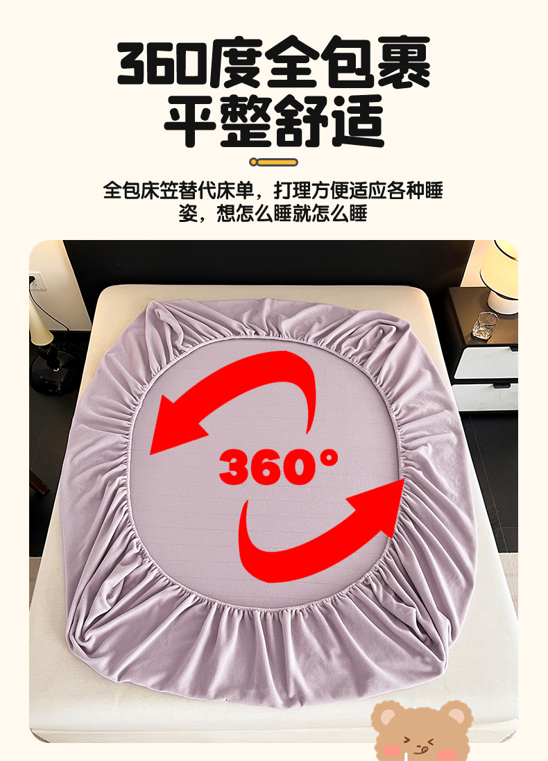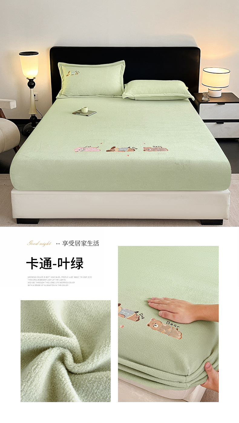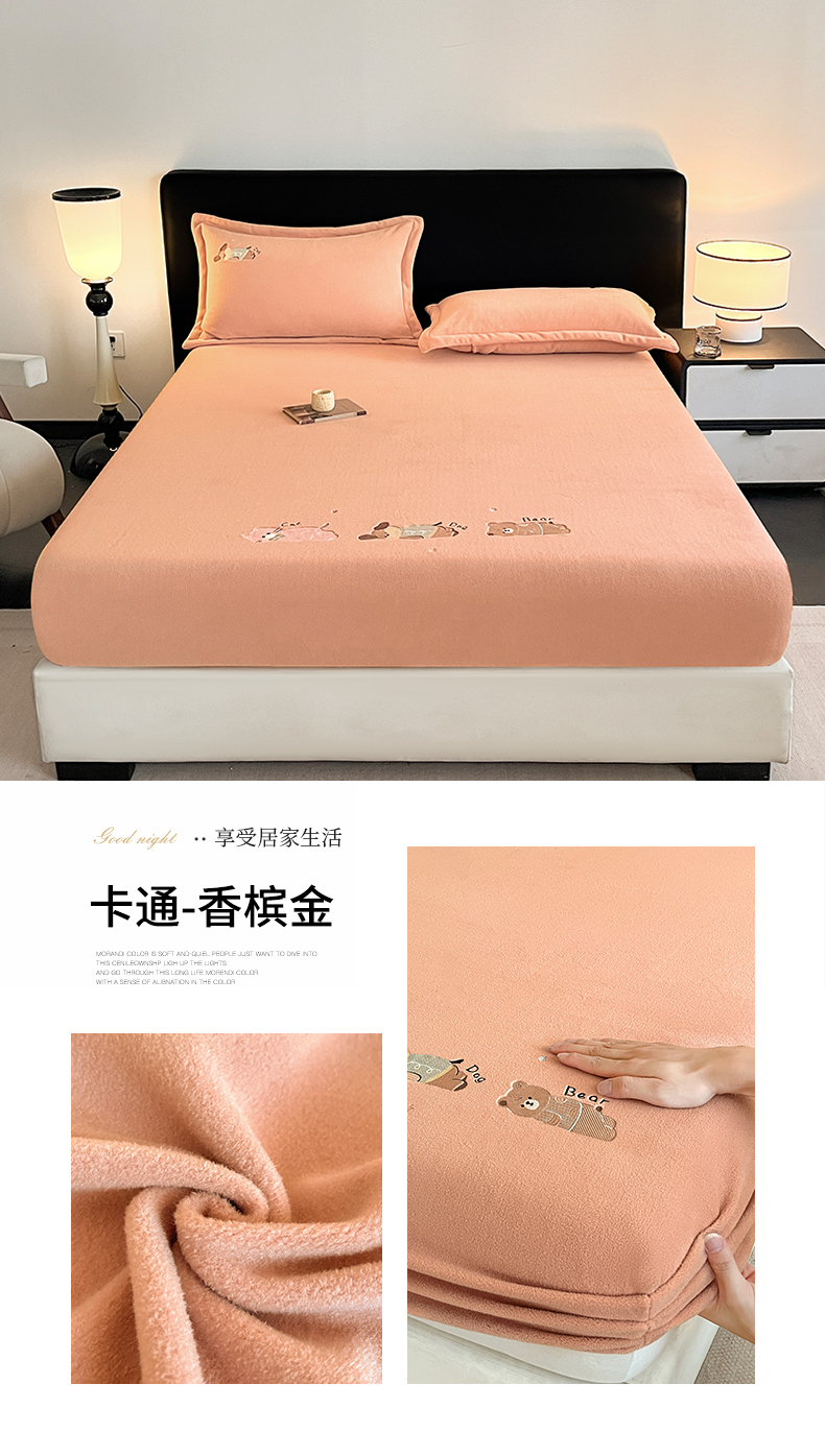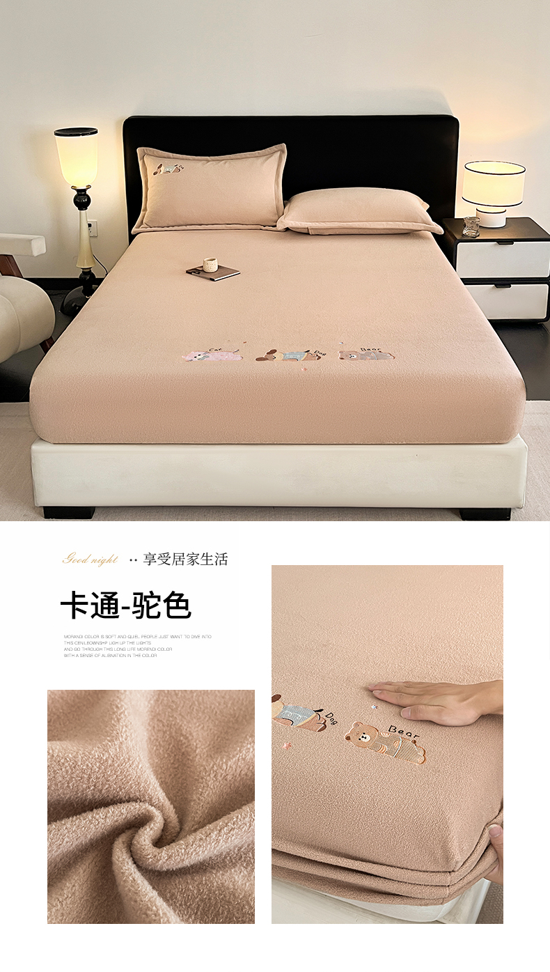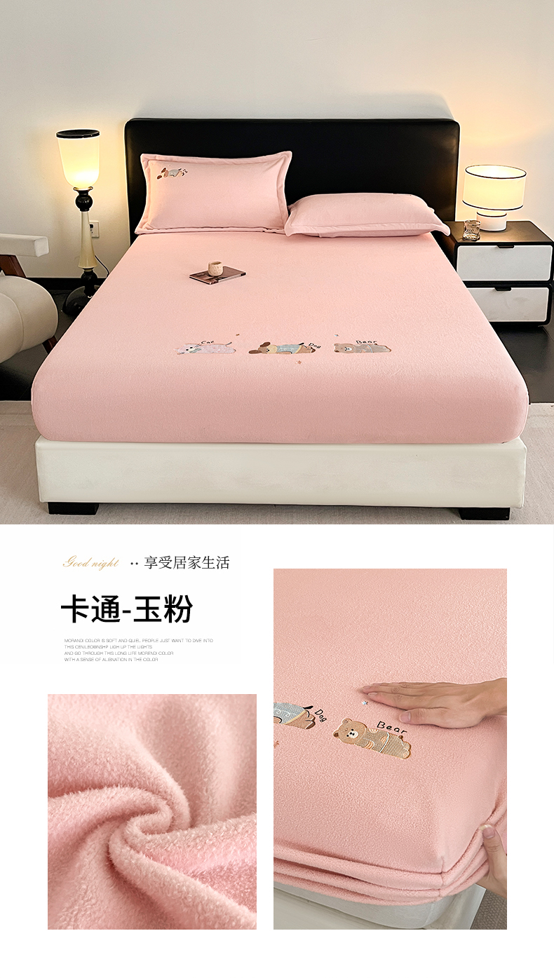 笙意家纺 2025新款A类牛奶绒海獭绒卡通刺绣床笠 卡通-月光紫