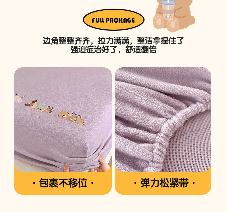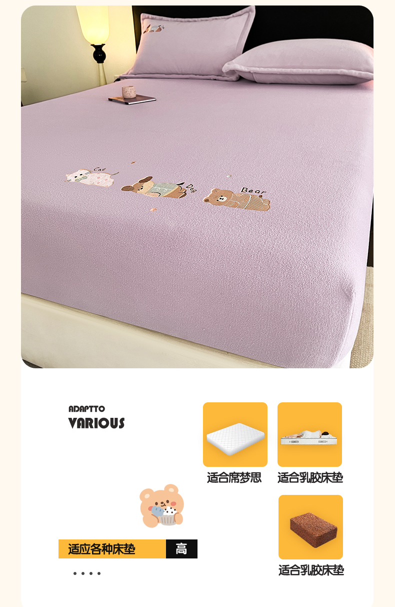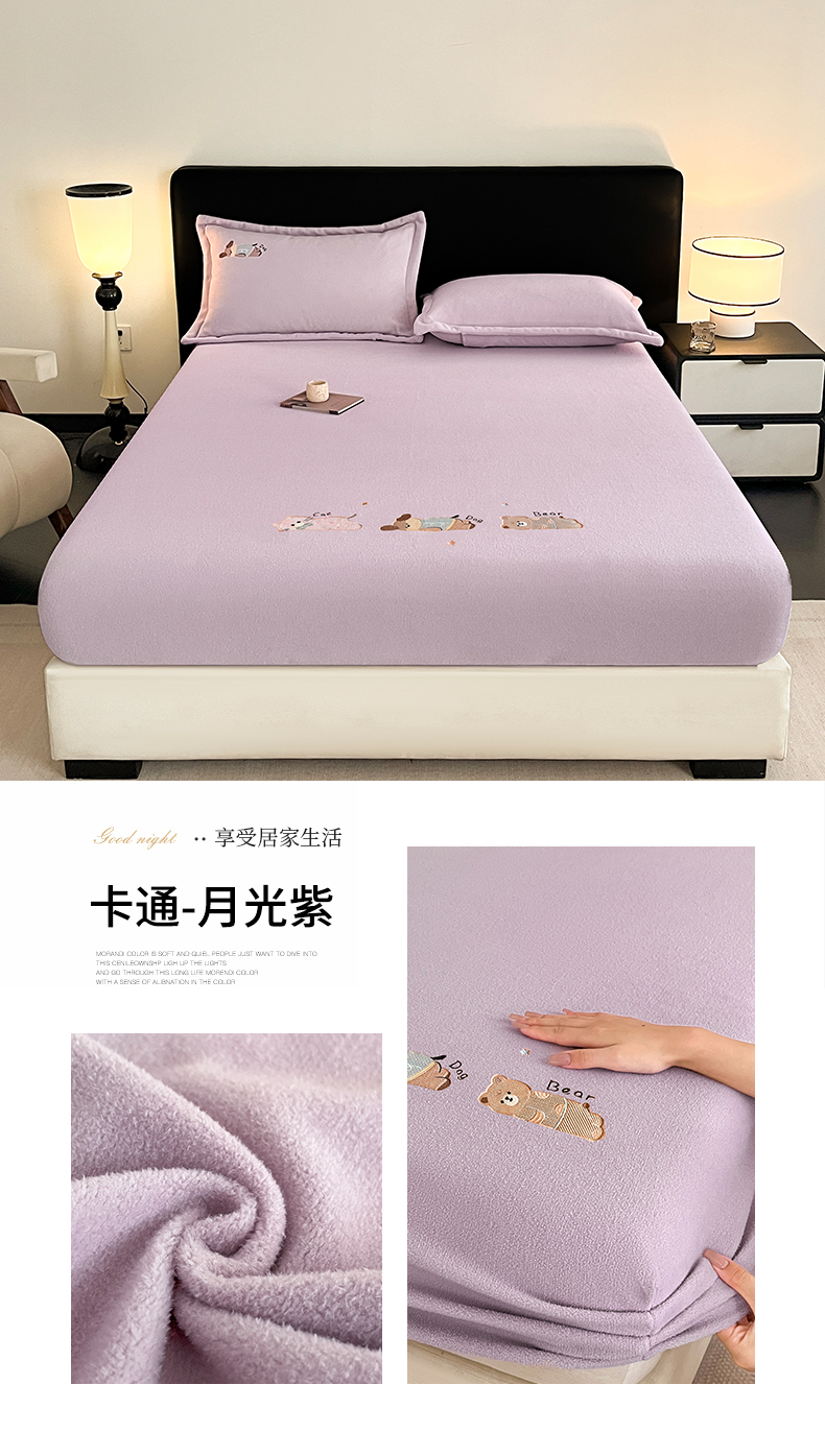 商品名称:笙意家纺 2025新款A类牛奶绒海獭绒卡通刺绣床笠 卡通-月光紫