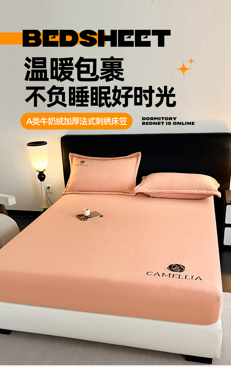 (总)笙意家纺 2025新款A类牛奶绒海獭绒卡通刺绣床笠,卡通-驼色,卡通-浅米色,卡通-香槟金,卡通-叶绿,卡通-玉粉,卡通-月光紫