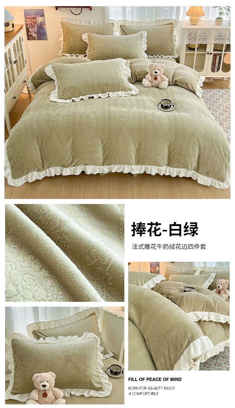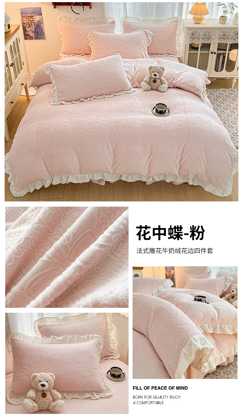 当前位置: 91家纺网 > 商品网购 > 床品套件 > 四件套 > 牛奶绒四件套 > 安哆啦家纺 2025新款法式雕花牛奶绒花边四件套 彼岸花-粉