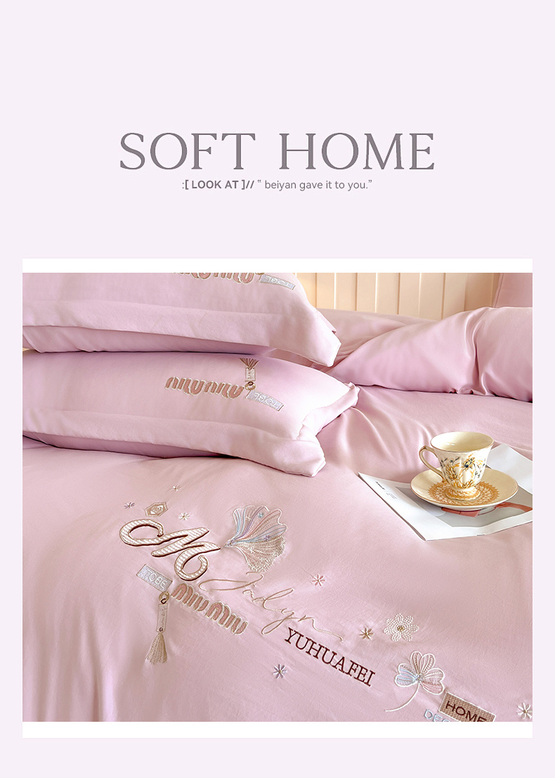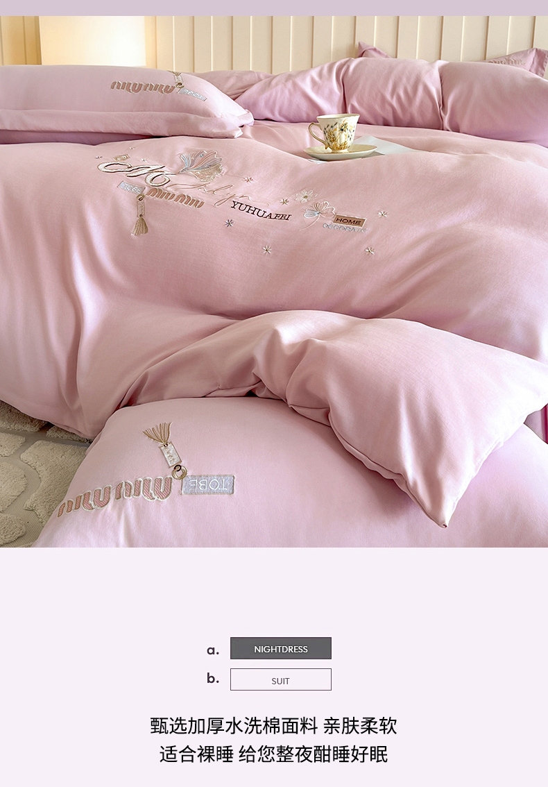 (总)文黛家居 2025新款高克重水洗棉绣花四件套-梦恋,梦恋-粉,梦恋-灰,梦恋-果绿,梦恋-浅蓝,梦恋-紫