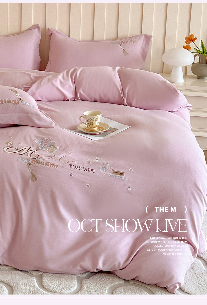 (总)文黛家居 2025新款高克重水洗棉绣花四件套-奢侈生活,奢侈生活-粉,奢侈生活-浅蓝,奢侈生活-灰,奢侈生活-果绿,奢侈生活-紫