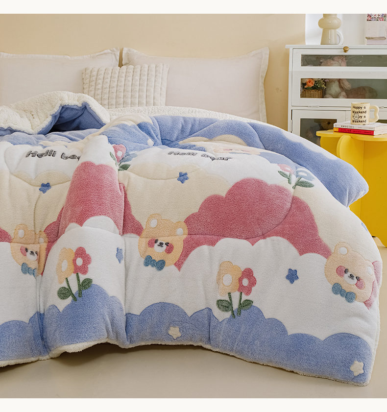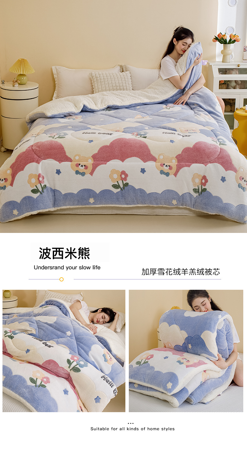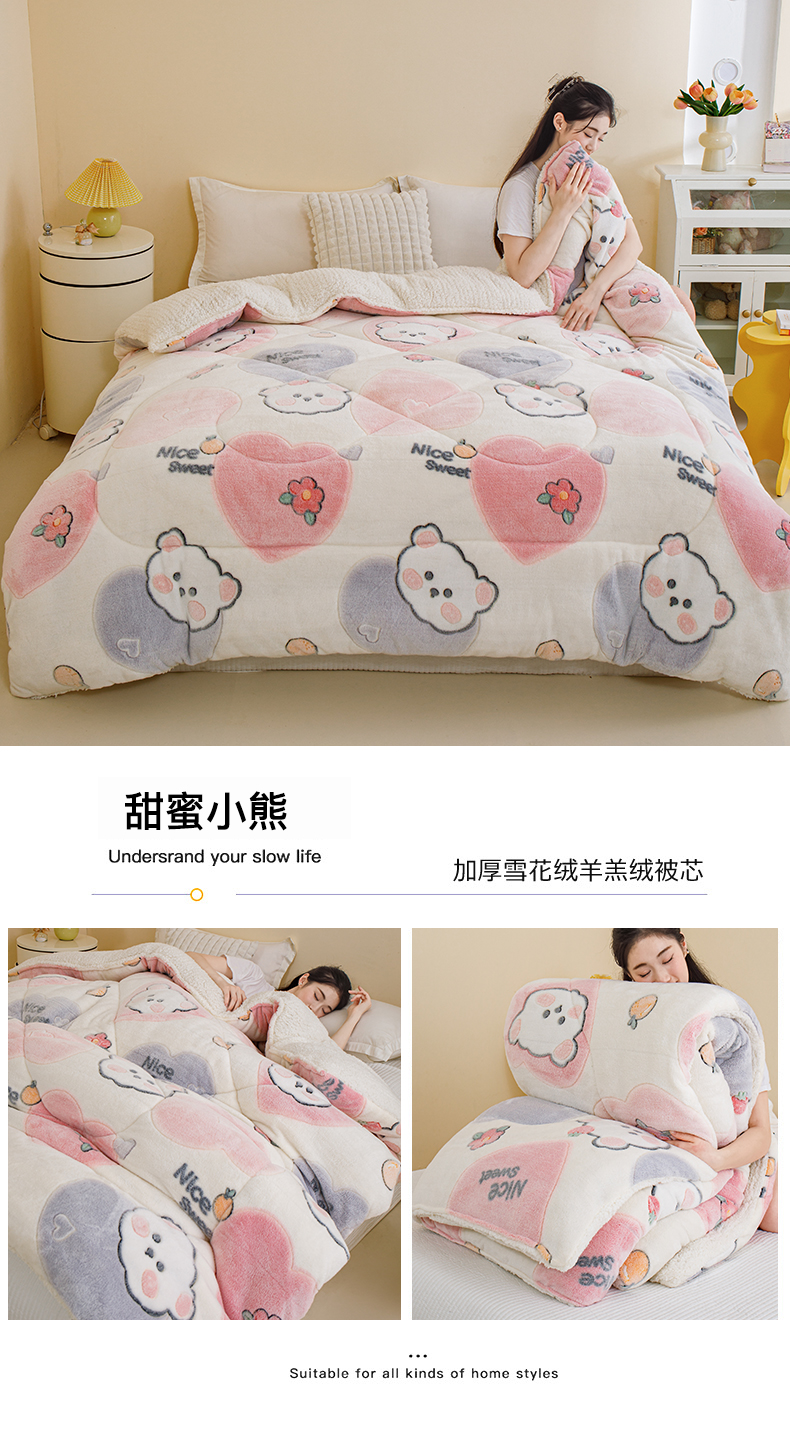 • 91家纺网 家纺一手货源 找家纺 (总)曼町家居 2025新款加厚升级款雪花绒印花冬被 被子被芯,草莓牛奶,花开花落,灰色星空,恐龙乐园,蓝色大耳狗,绅士派对,甜蜜小熊,熊猫宝贝