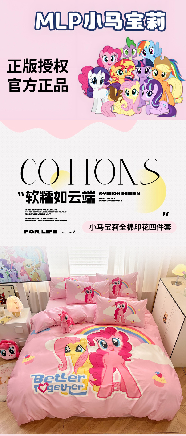 当前位置: 91家纺网 > 商品网购 > 床品套件 > 四件套 > 全棉普通四件套 > 暮思家居 2025新款正版授权小马宝莉大版全棉数码印花纯棉四件套 大版-柔柔碧琪