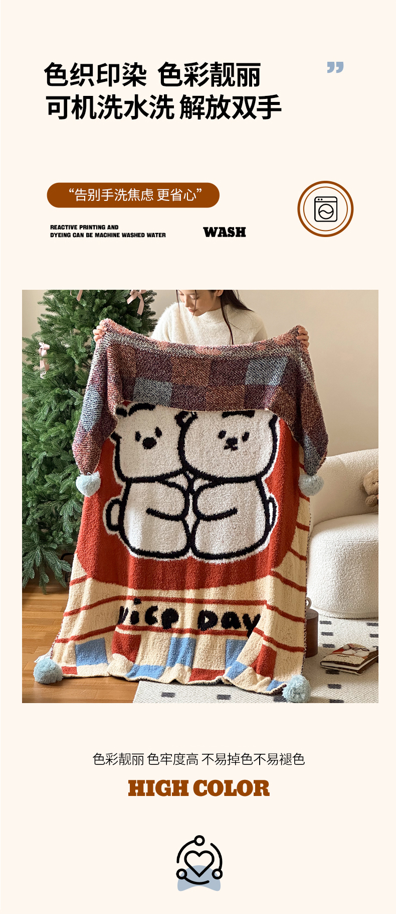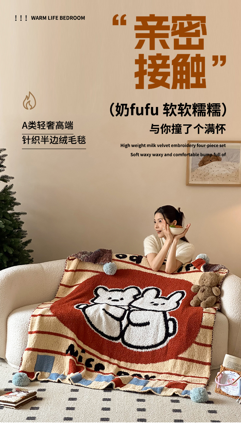 当前位置: 91家纺网 > 商品网购 > 毛毯休闲毯绒毯 > 毛毯 > Sweet dreams甜梦 2025新款轻奢高端毛球款半边绒针织毛毯 抱抱熊