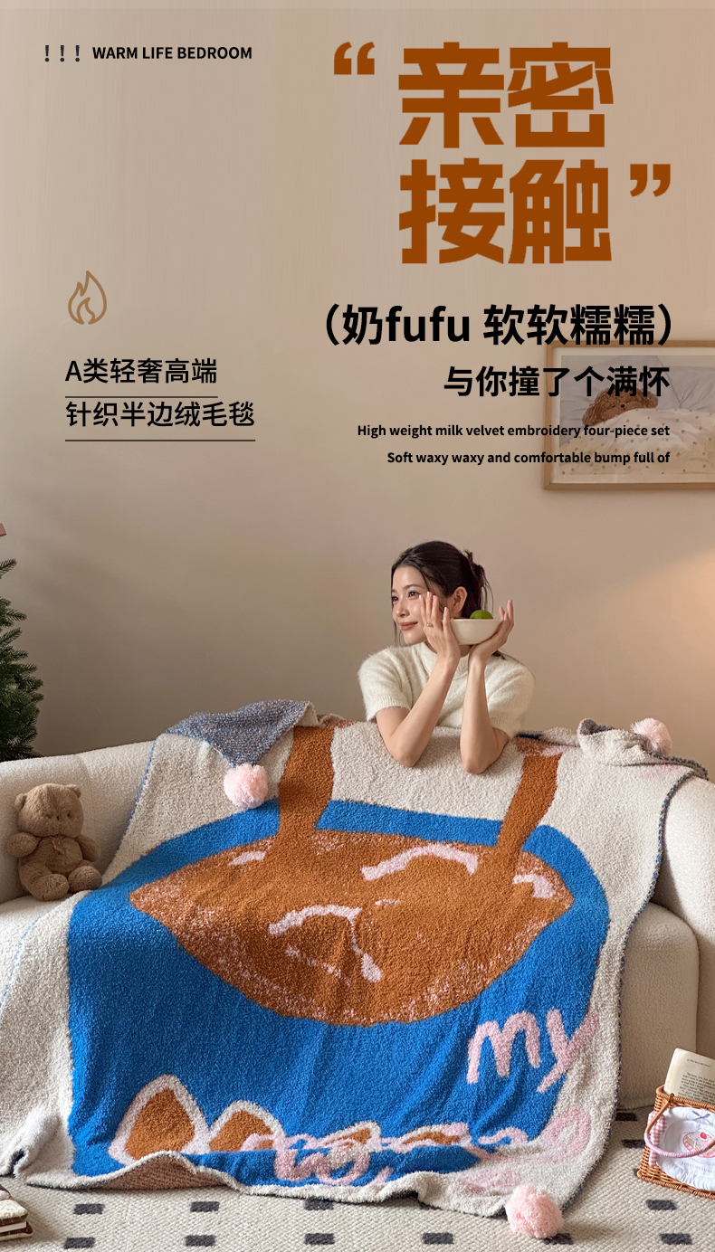 当前位置: 91家纺网 > 商品网购 > 毛毯休闲毯绒毯 > 毛毯 > Sweet dreams甜梦 2025新款轻奢高端毛球款半边绒针织毛毯 早晨的咖啡