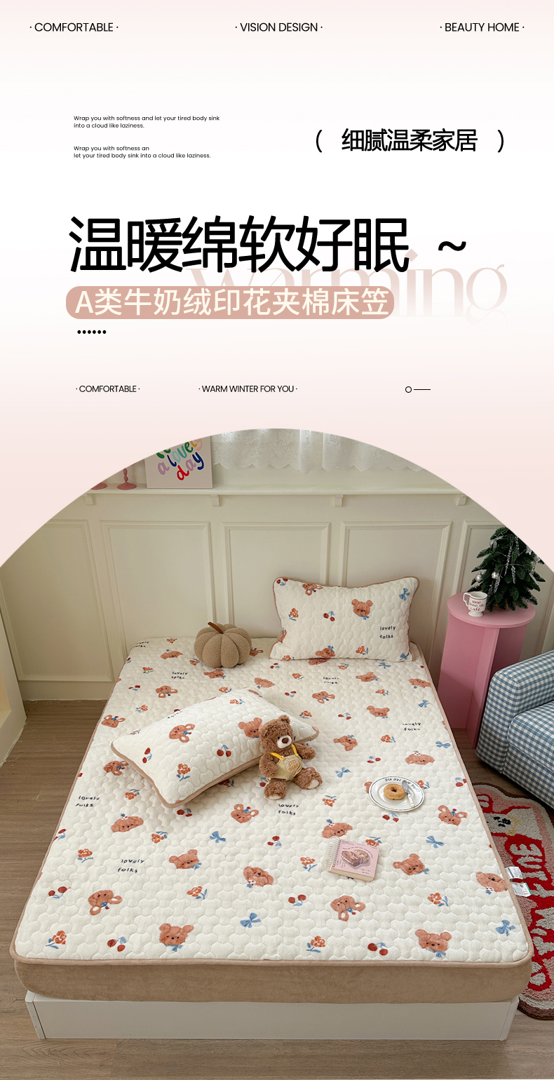 (总)Sweet dreams甜梦 2025新款高克重牛奶绒印花夹棉床笠圣诞款,冬日小猫粉,糖豆,雪人奇趣园
