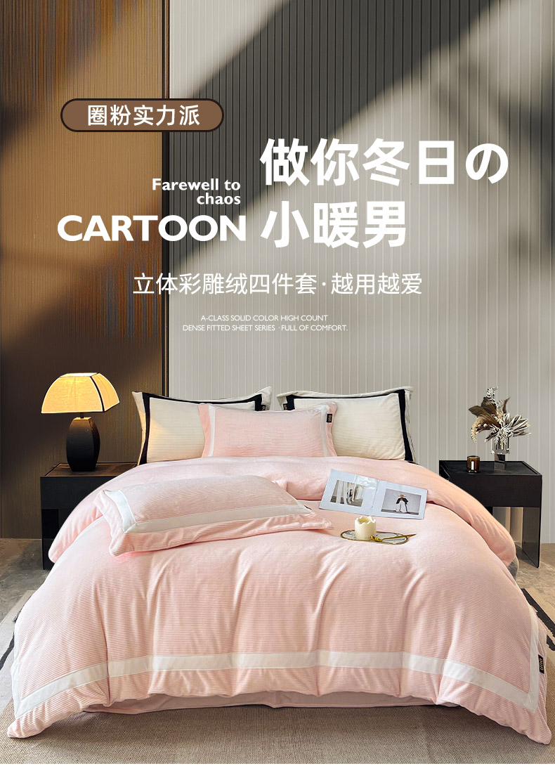 (总)吾诺家居 吾诺 纽扣式雕花牛奶绒四件套-曲线系列 烂花四件套纽扣款,曲线白,曲线粉,曲线灰,曲线咖