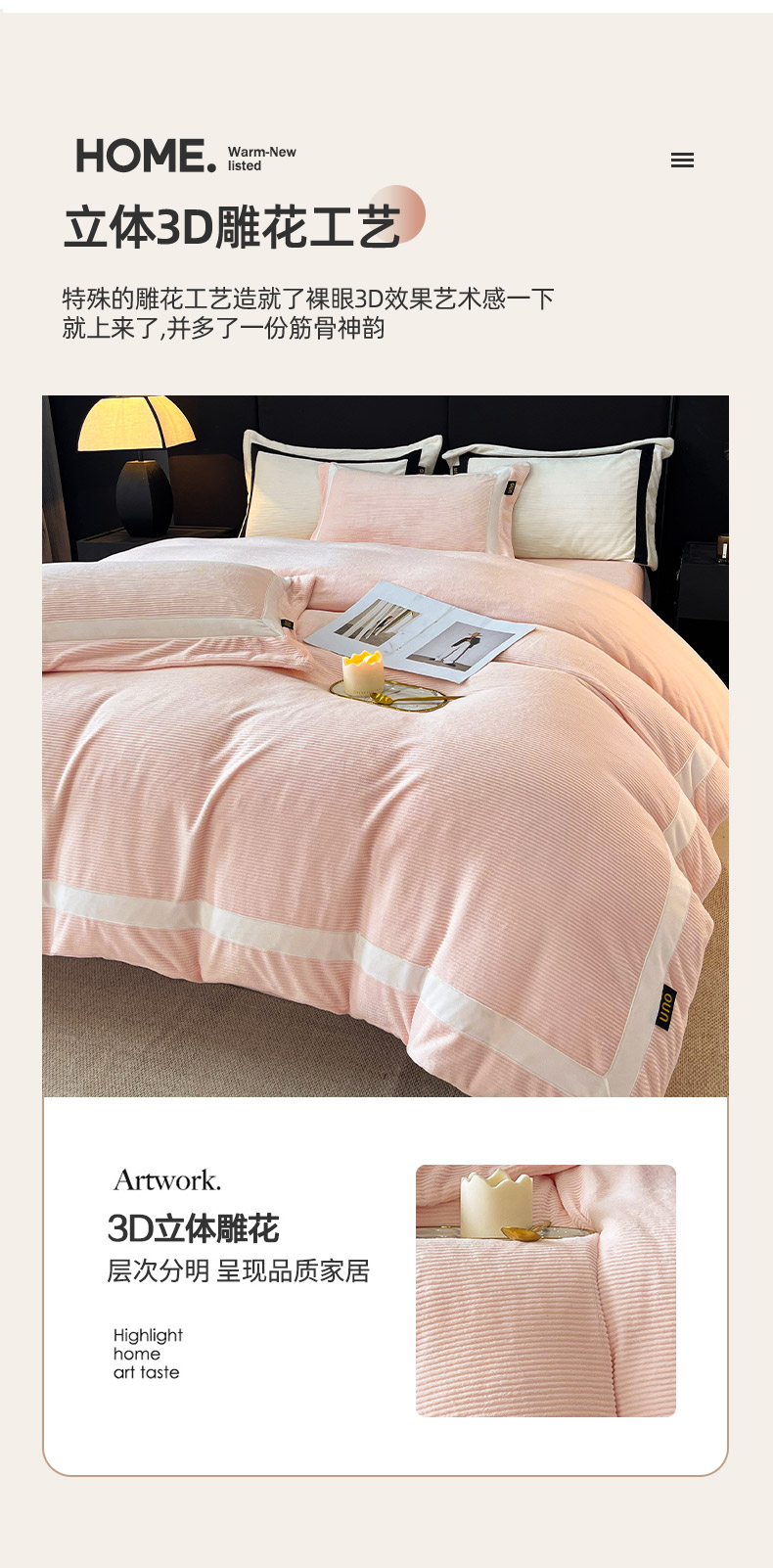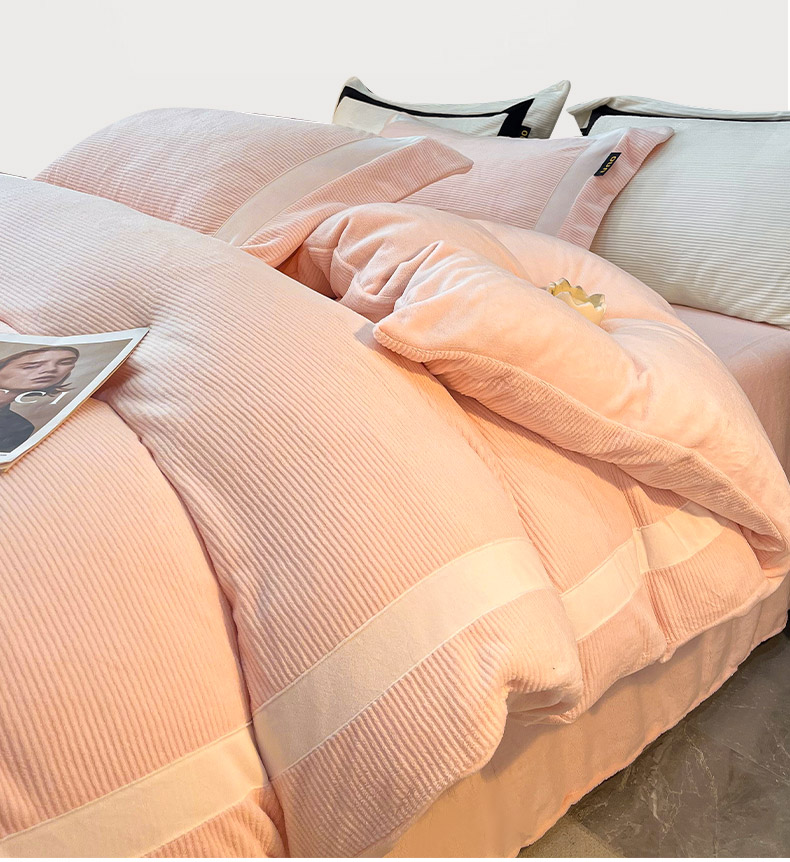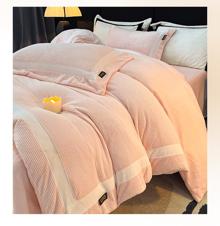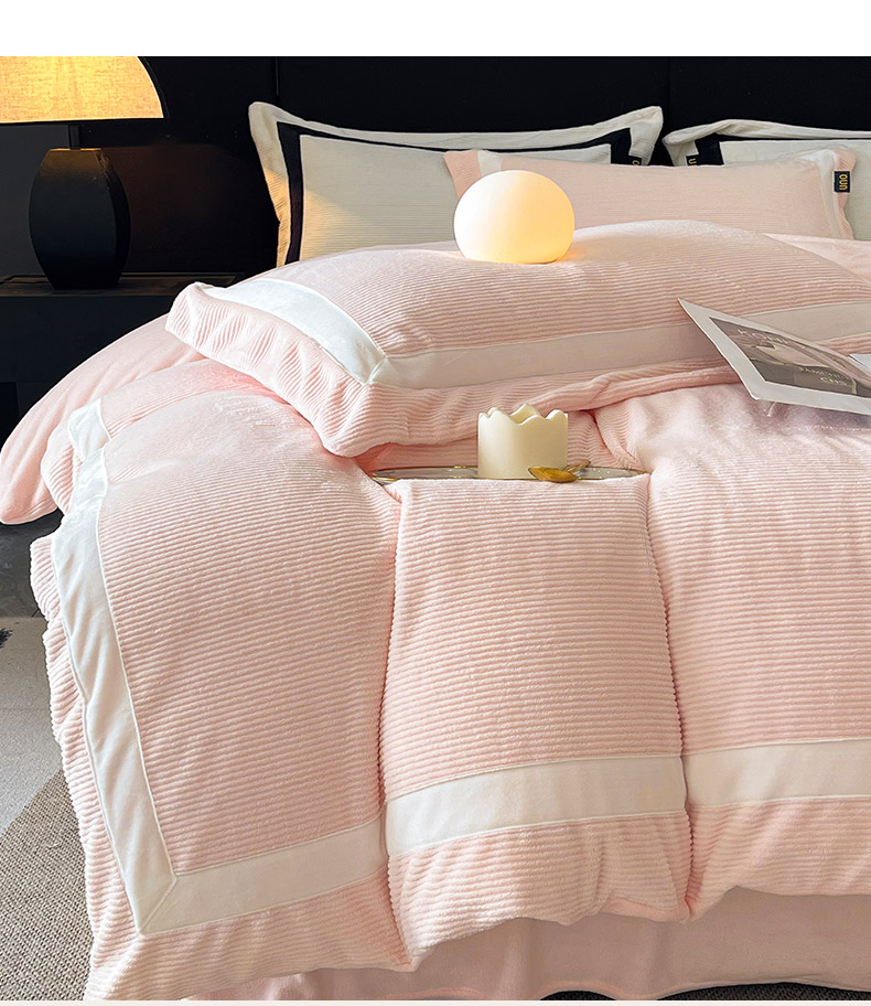 吾诺家居 吾诺 2025绽放系列--手工织带款雕花牛奶绒四件套 条纹玉