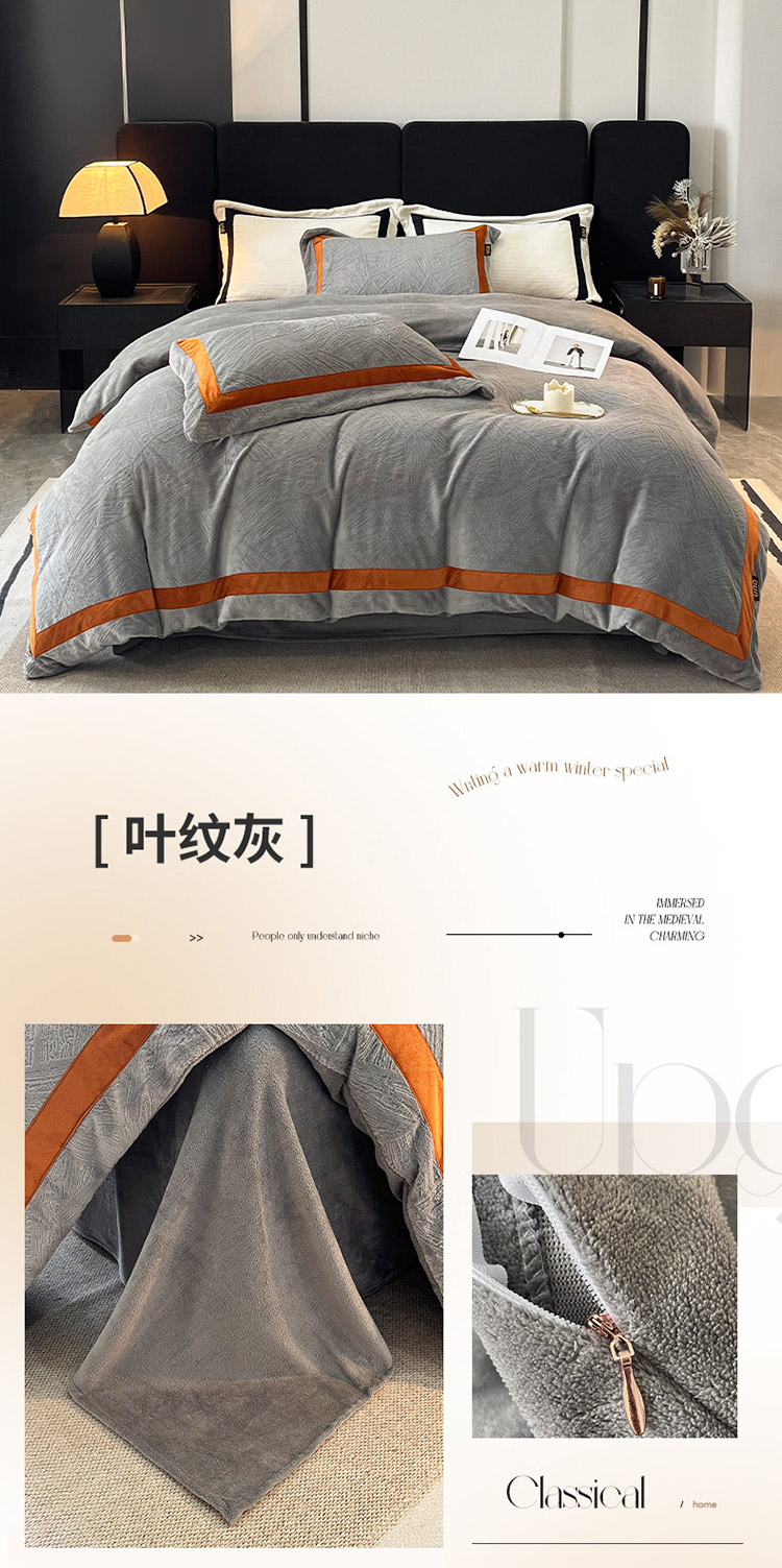 (总)吾诺 兔毛边230克雕花牛奶绒四件套 - 秋意系列,朝花,紫叶,花海,轻羽,飞花,秋意,冬梅,华美,春野