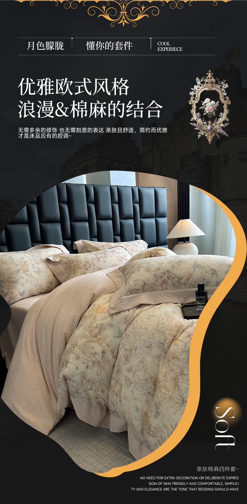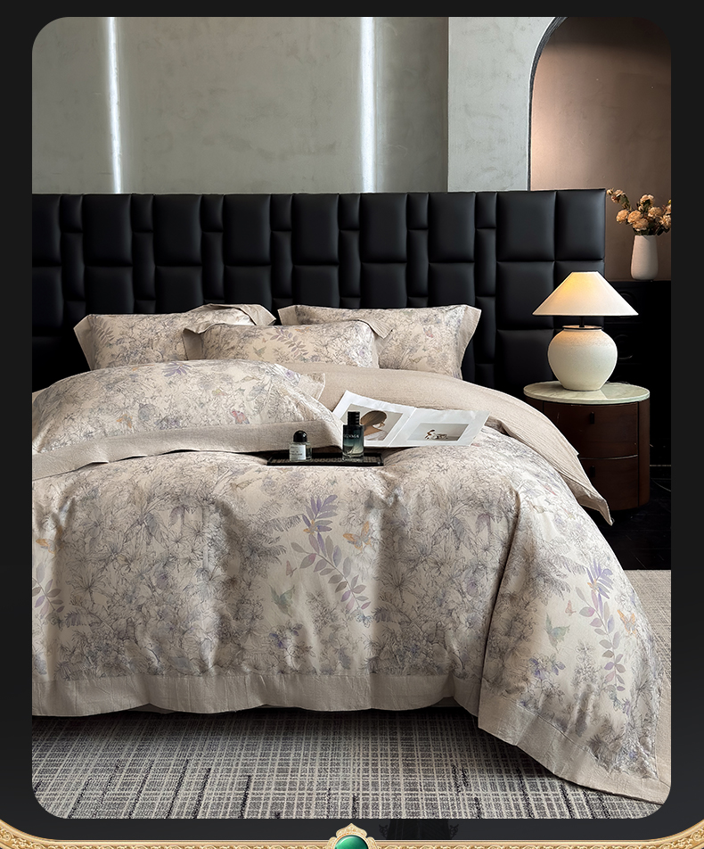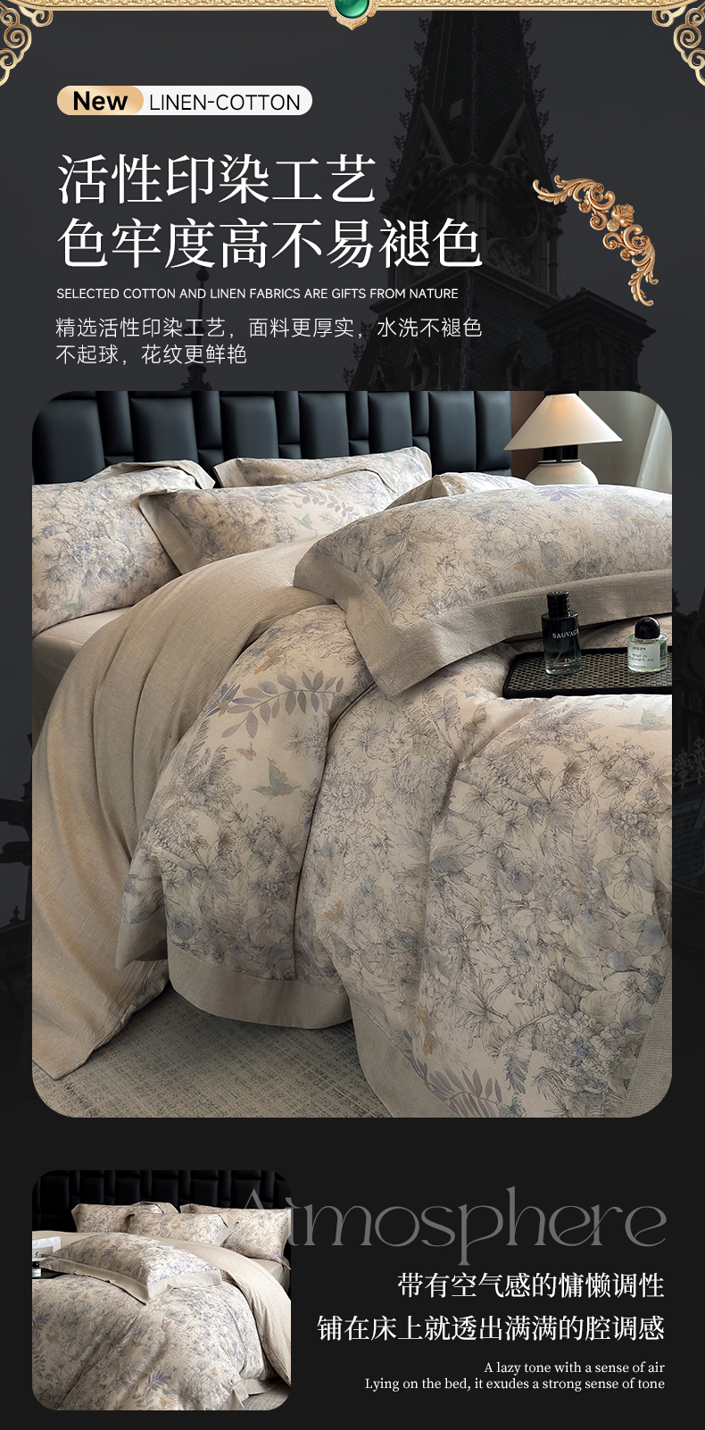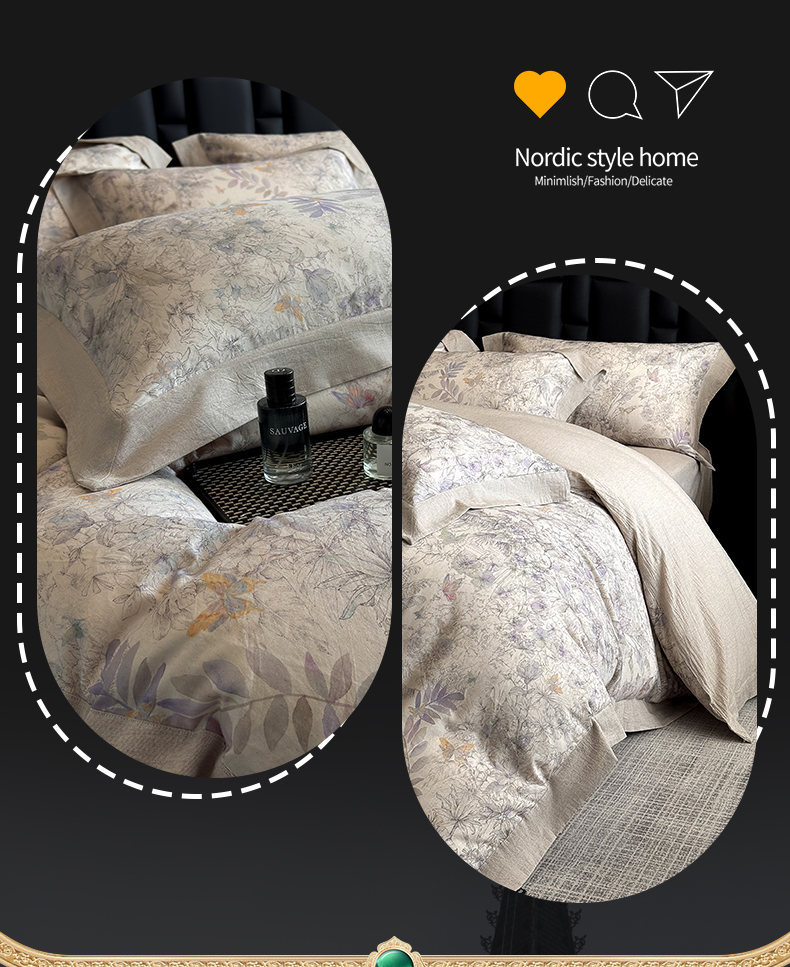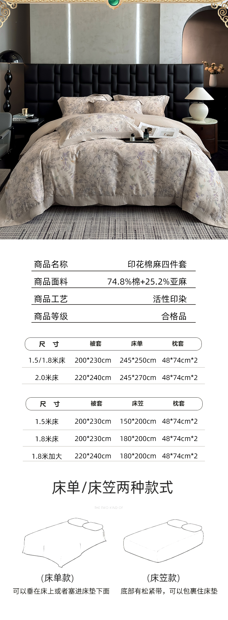 当前位置: 91家纺网 > 商品网购 > 床品套件 > 四件套 > 棉麻四件套 > 家居1号 2025新款四季款活性数码印花 纯棉亚麻四件套 青逸花蝶-紫色