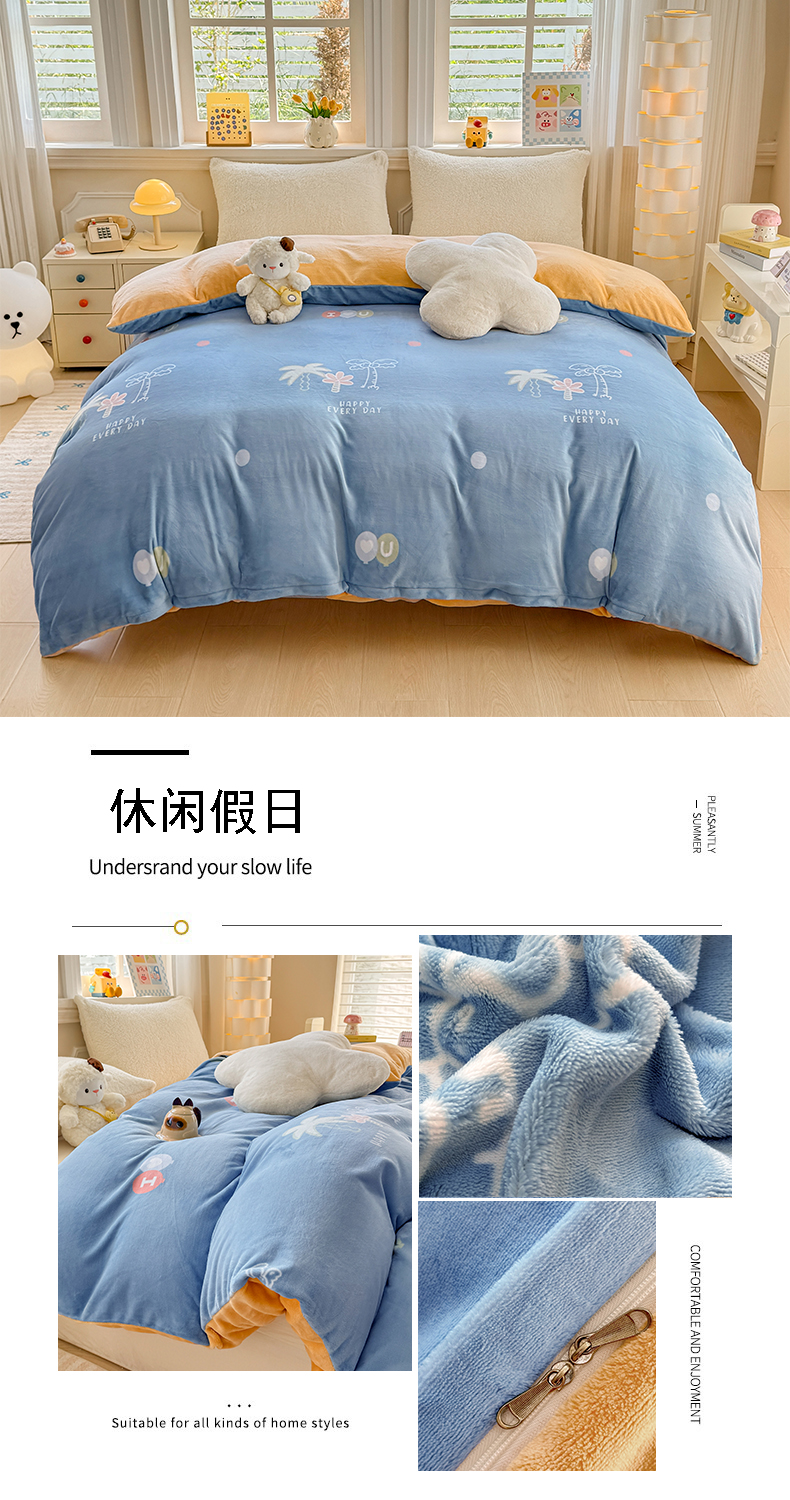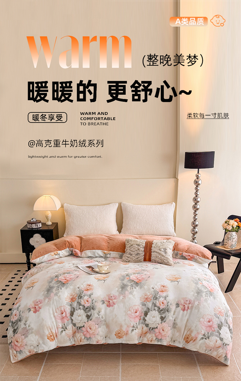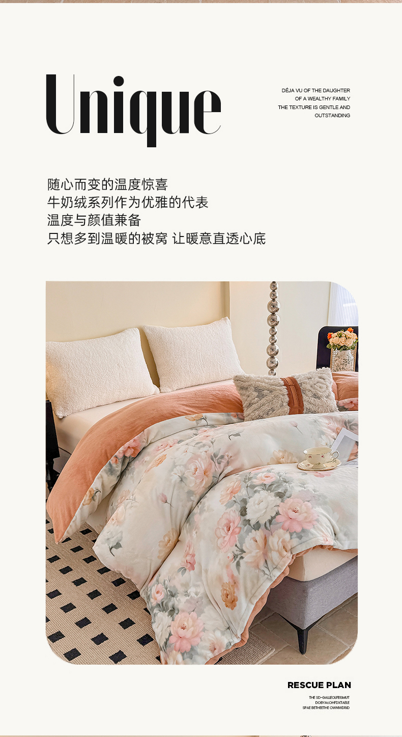 • 91家纺网 家纺一手货源 找家纺 金盛纺 2025新款高克重牛奶绒印花系列单被套(可定制) 墨染