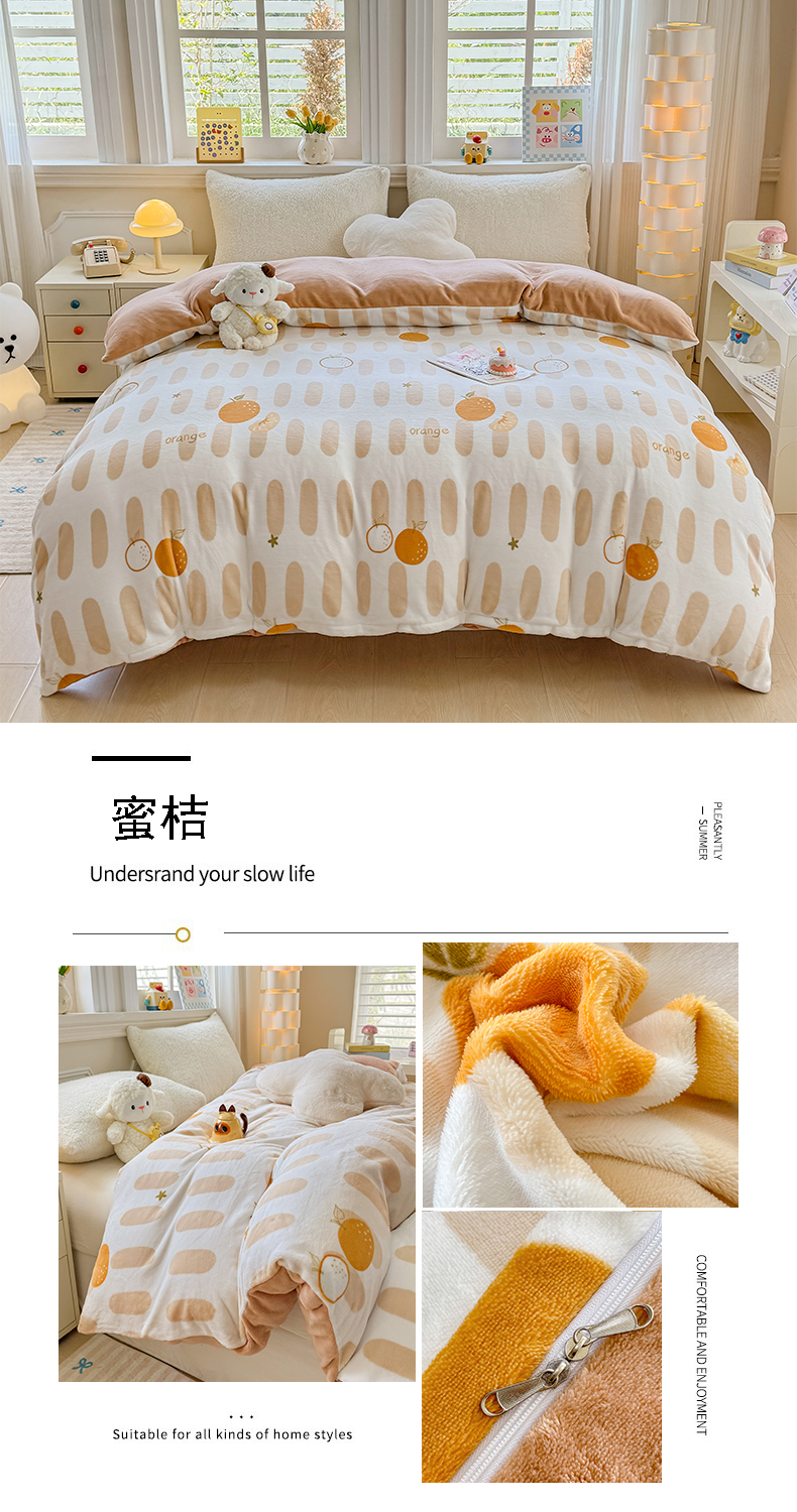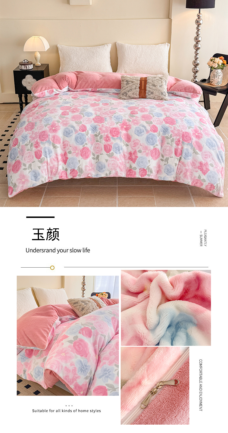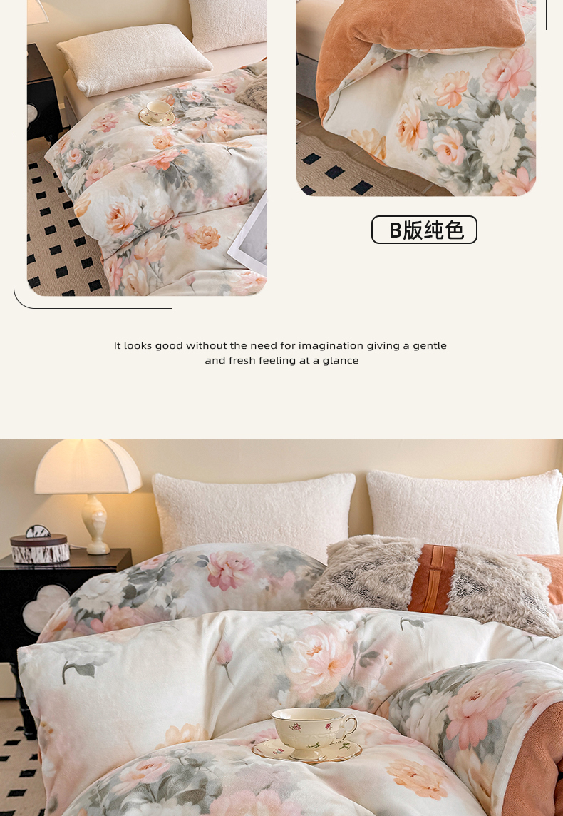 • 91家纺网 家纺一手货源 找家纺 金盛纺 2025新款高克重牛奶绒印花系列单被套(可定制) 墨染