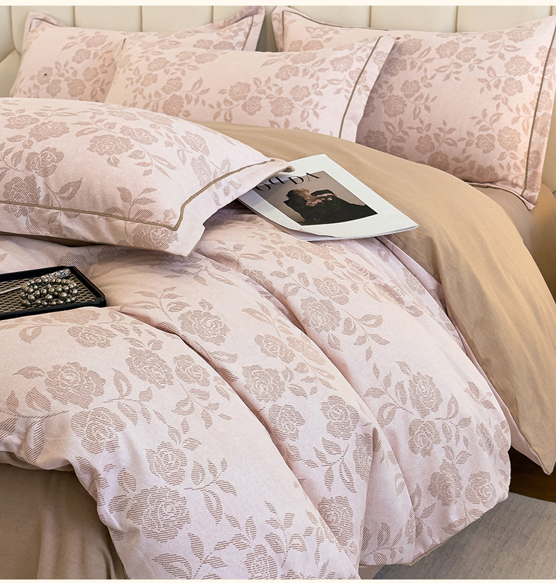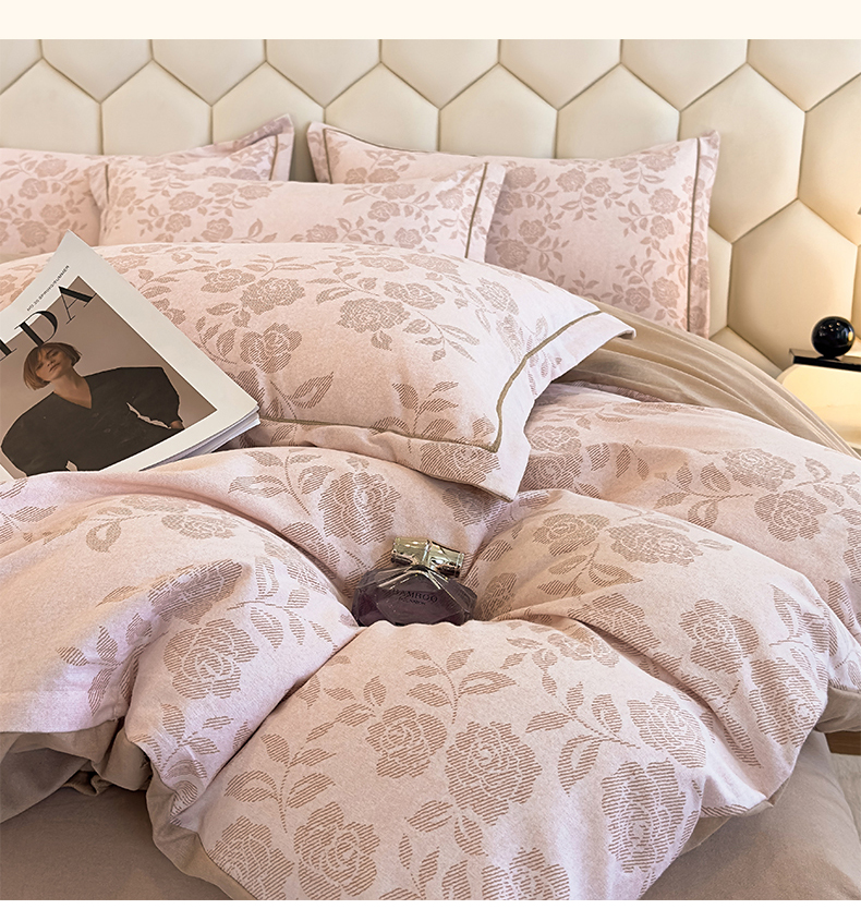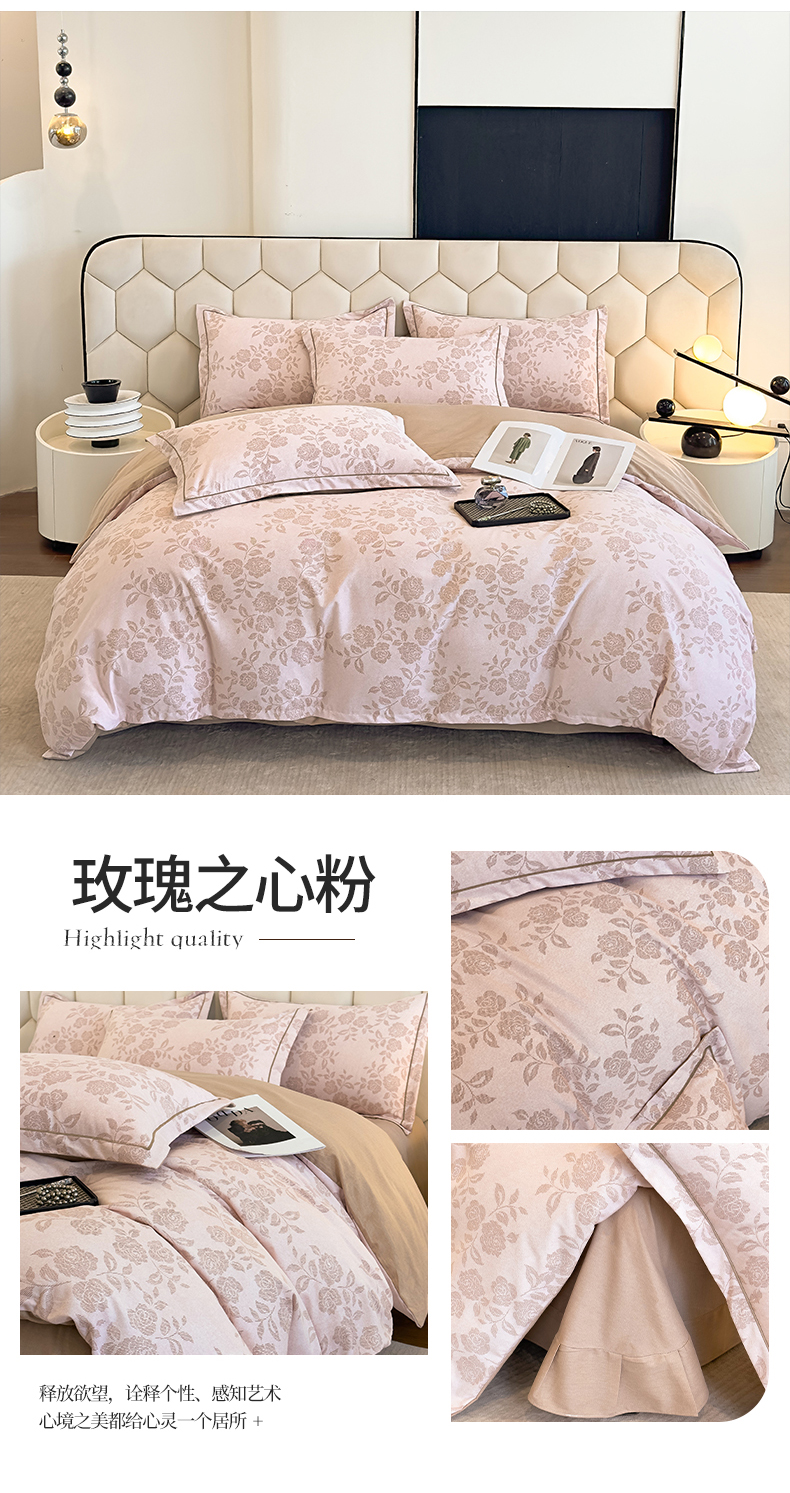 商品名称:雲归梦 2025新款纯棉加厚磨毛多规格磨毛四件套 玫瑰之心粉