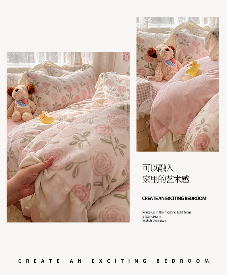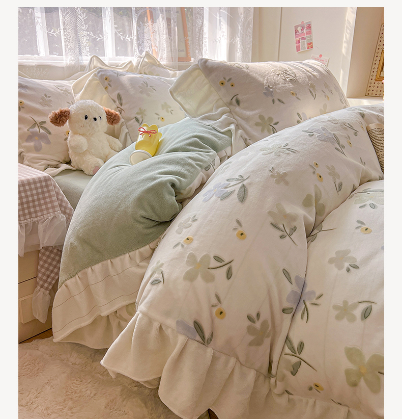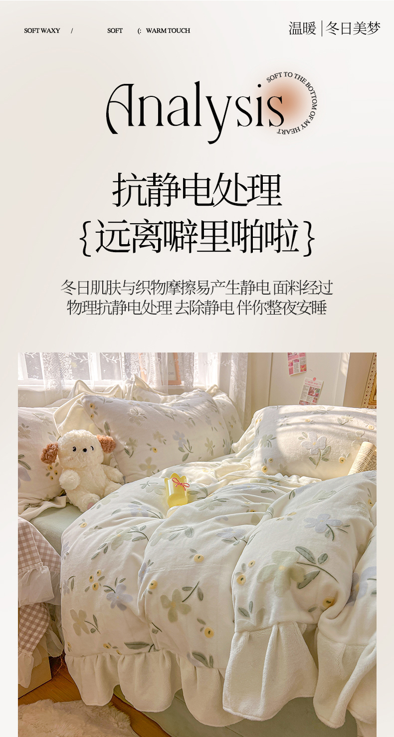 (总)满座家居 2025新款清新唯美木耳边加厚牛奶绒四件套雕花绒四件套,艾莎 粉,雏菊晨露 粉,田园风景 绿,蝶恋花 粉,邂逅,安妮 粉