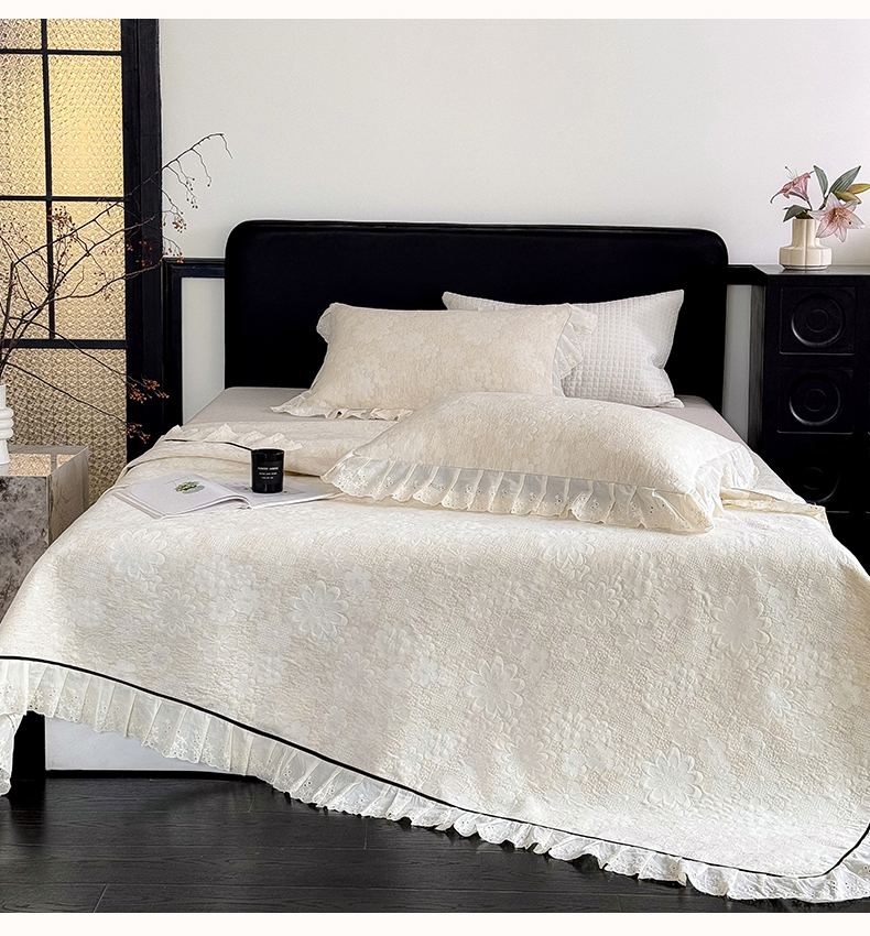 金鹰 2025新款A类全棉花边棉麻空气层床盖 花边床盖-春意