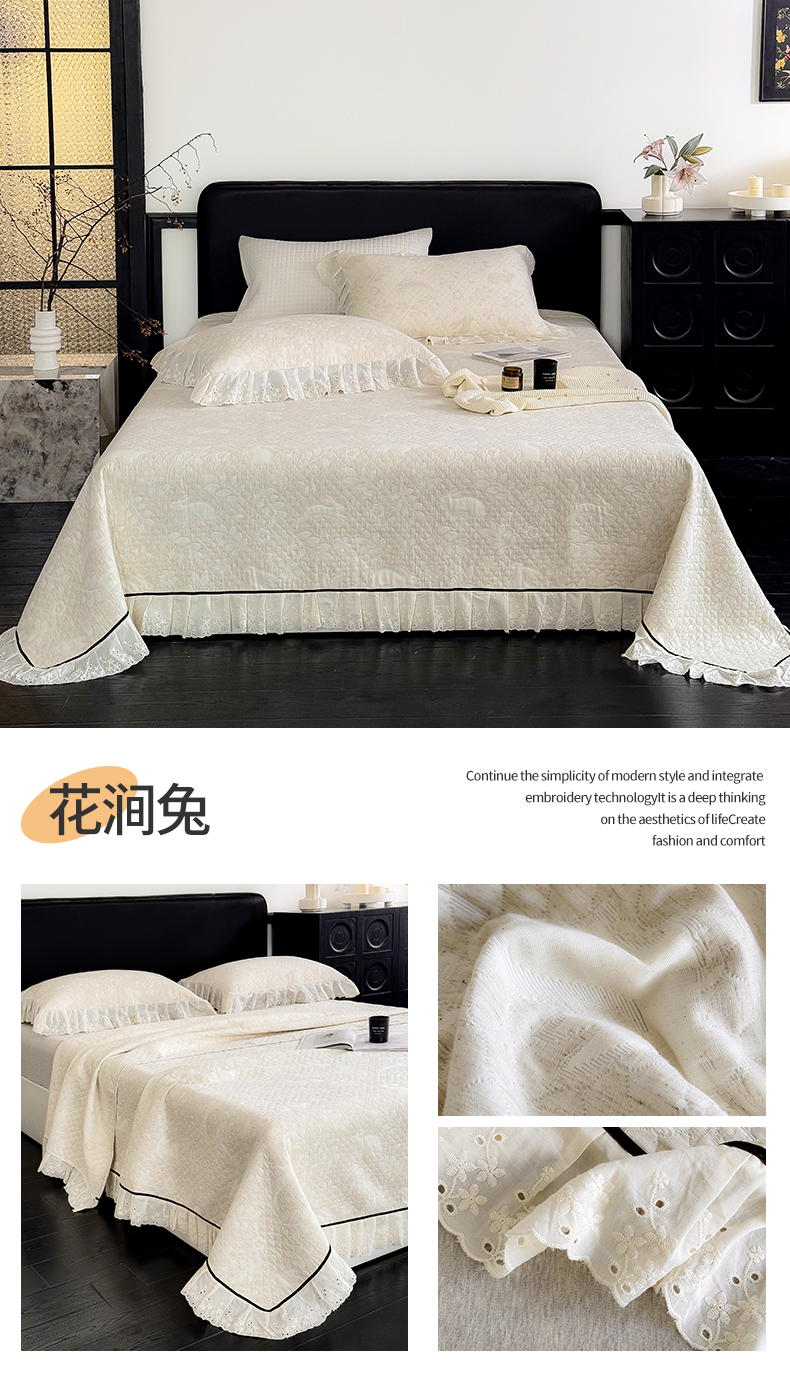 商品名称:金鹰 2025新款A类全棉花边棉麻空气层床盖 花边床盖-春意
