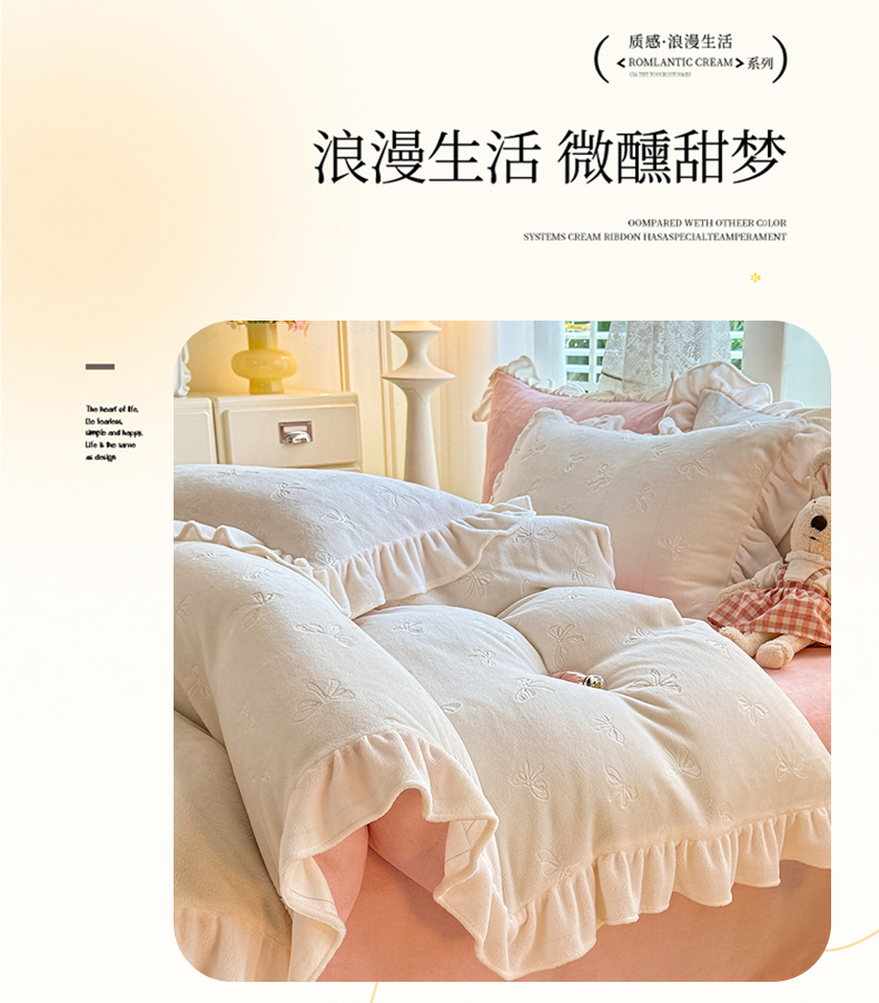 (总)逸尚阁 2025新款立体雕花牛奶绒花边款四件套--塔丽娜系列,塔丽娜-奶白粉,塔丽娜-玫瑰粉,塔丽娜-奶黄色,塔丽娜-浅玉色,塔丽娜-天空蓝