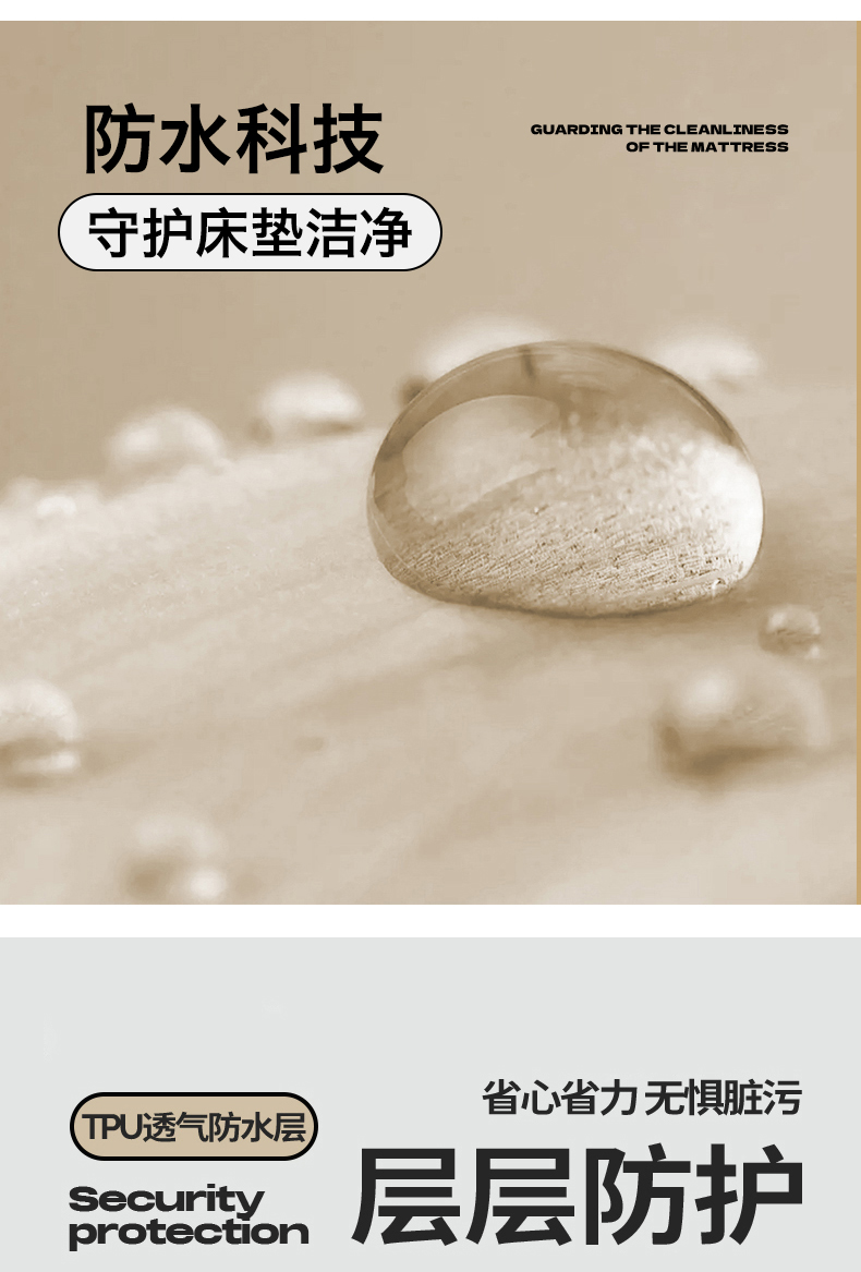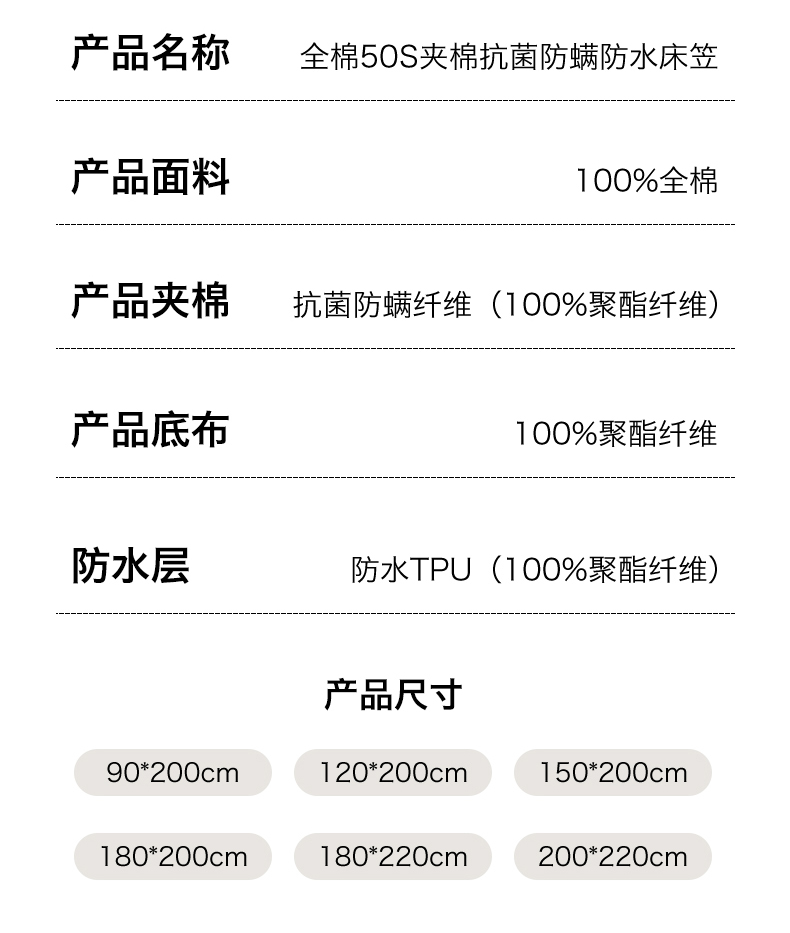商品名称:(总)金鹰 2025新款全棉50S抗菌防螨夹棉防水床笠席梦思保护套床垫套