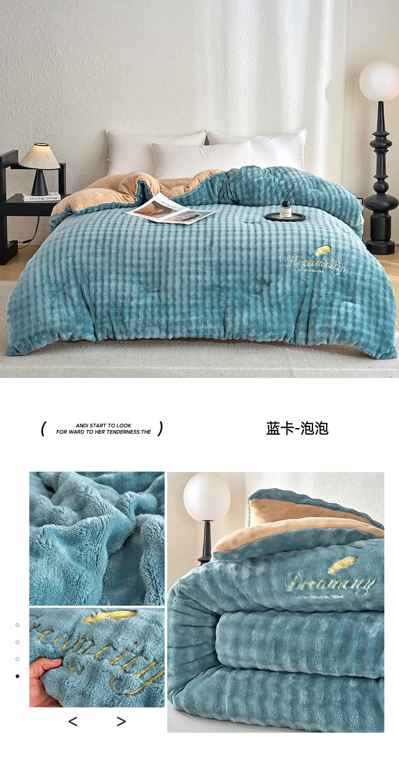 小叮当家纺仓储工厂店 2025新款兔毛牛奶绒加厚保暖冬被外贸跨境被子被芯 蓝卡-泡泡绒