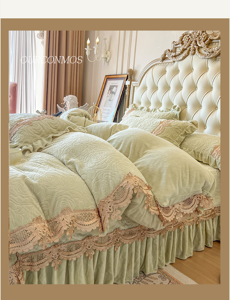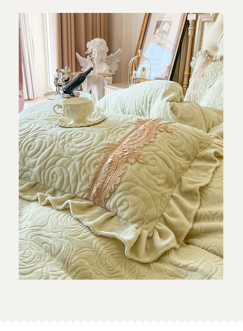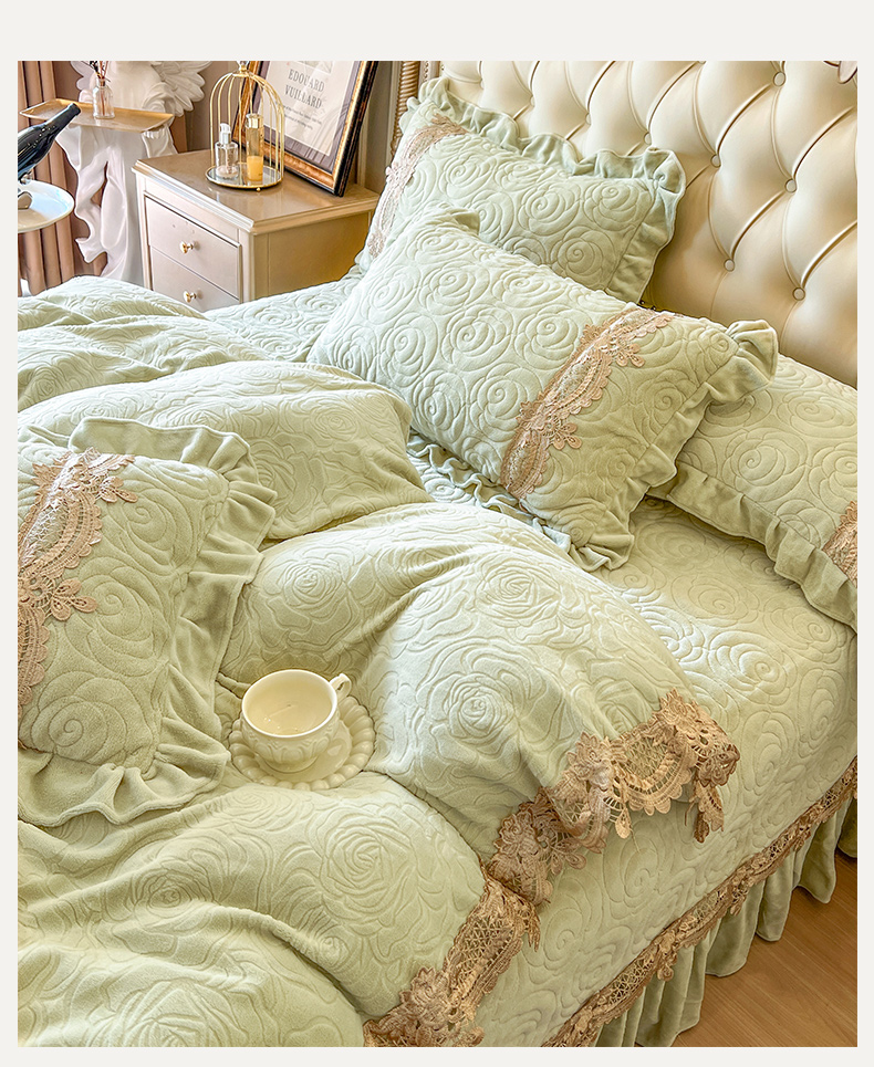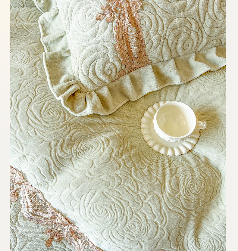 商品名称:恋尚 2025新款雕花牛奶绒罗曼蒂克系列四件套(控价290) 罗曼蒂克-香草绿