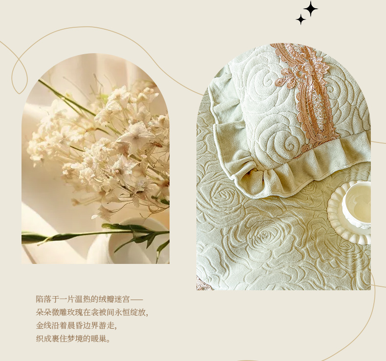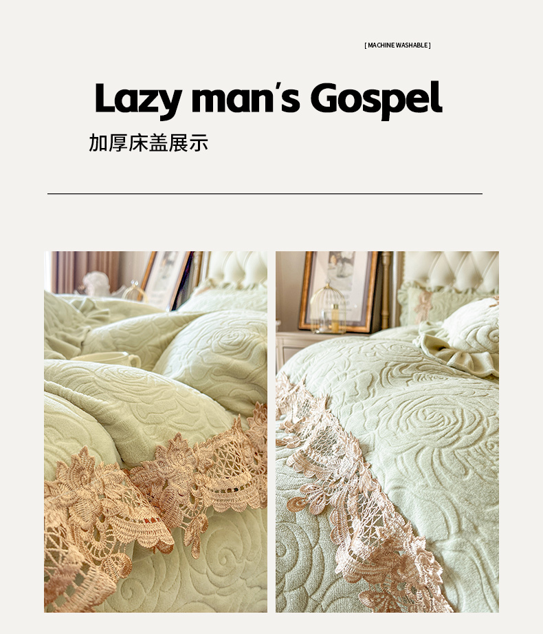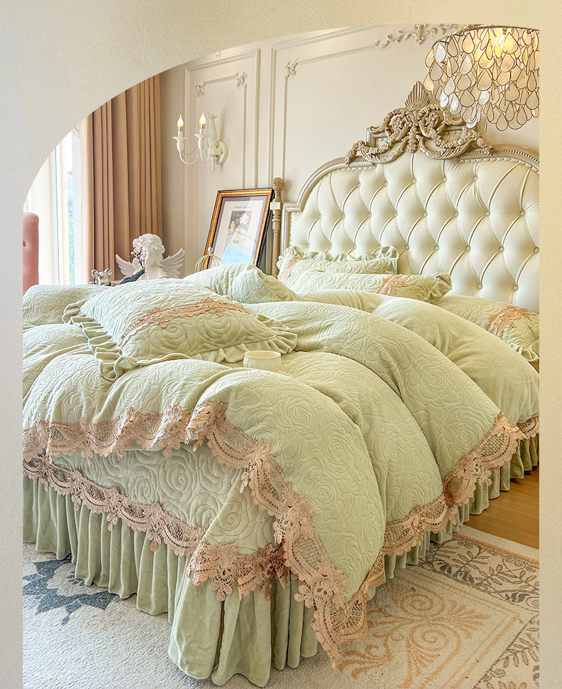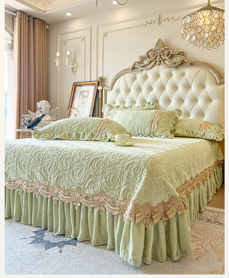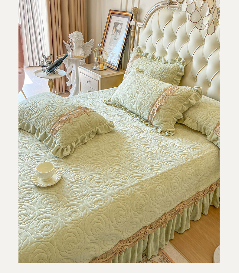 商品名称:恋尚 2025新款雕花牛奶绒罗曼蒂克系列四件套(控价290) 罗曼蒂克-香草绿