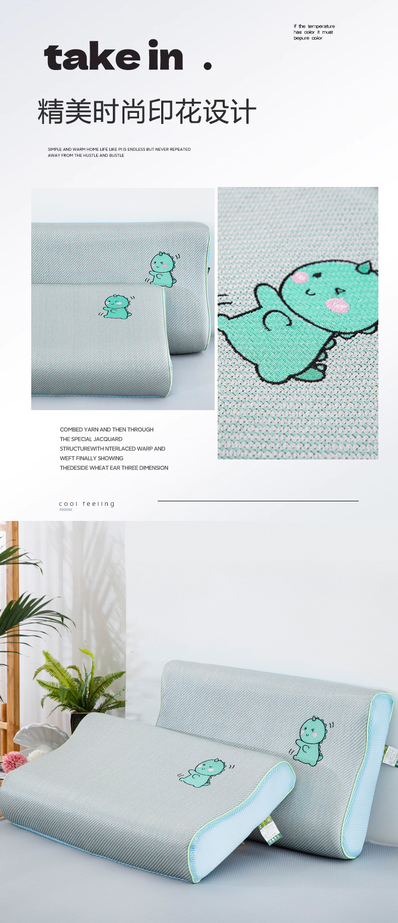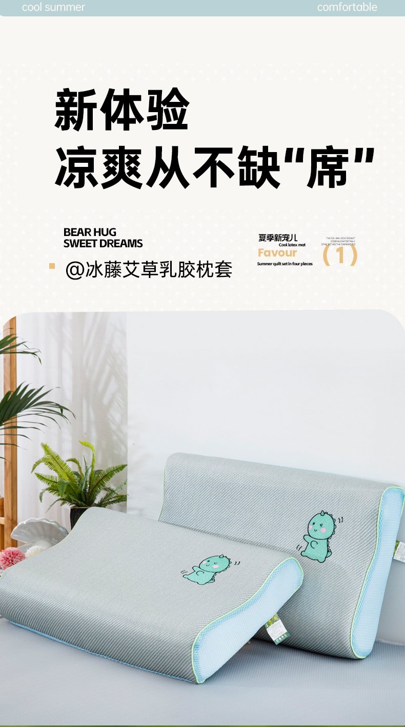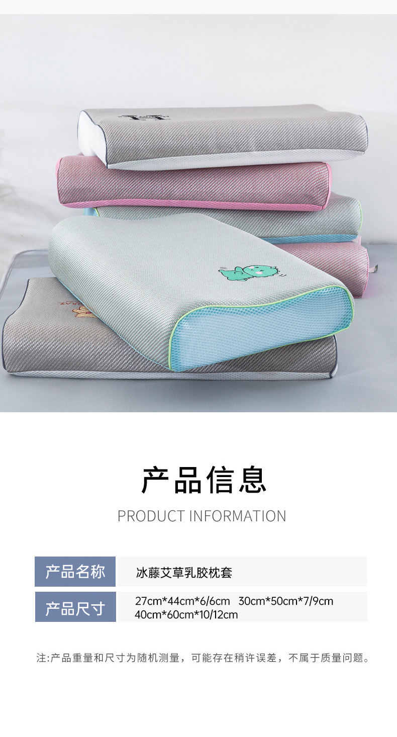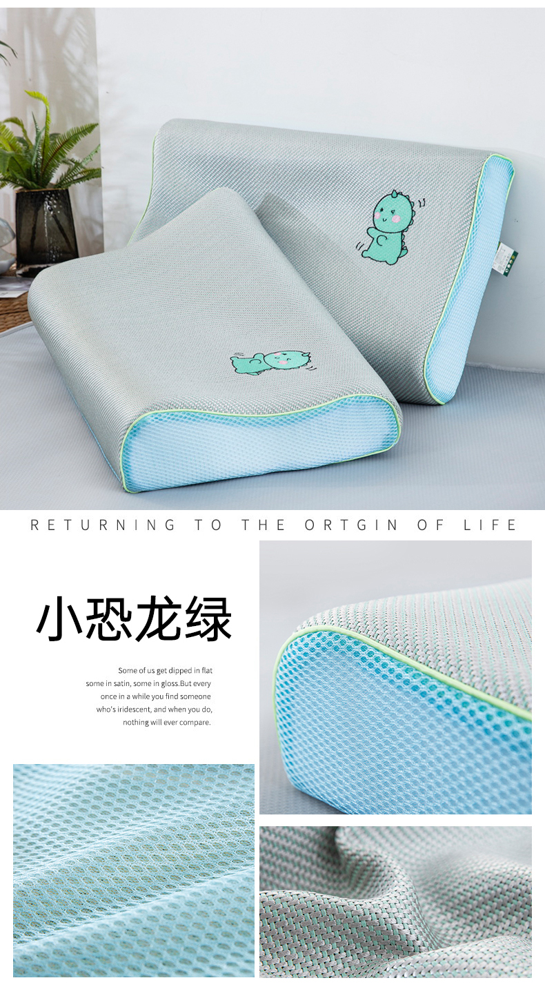 商品名称:大黄蜂家居家纺 2025新款艾草冰滕乳胶枕套含芯 小恐龙绿