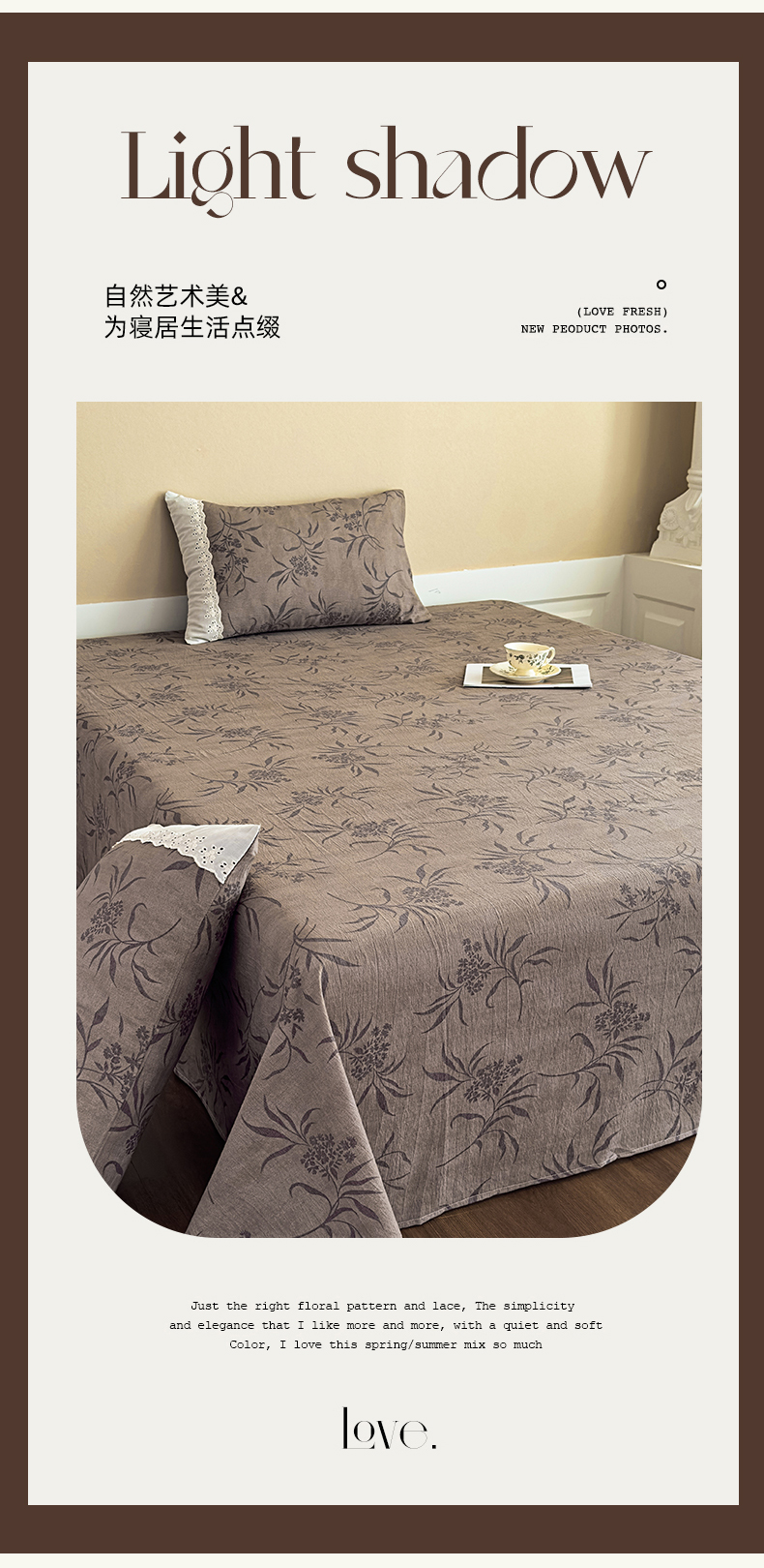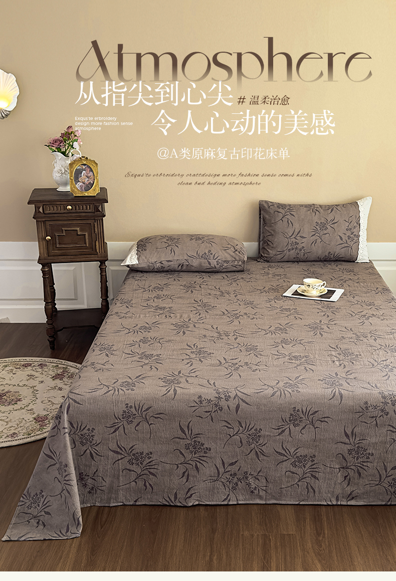 商品名称:丝芙妮家居(原乐视家纺) 2025新款全棉纯棉蕾丝花边原麻单件床单单品床单 风野涧