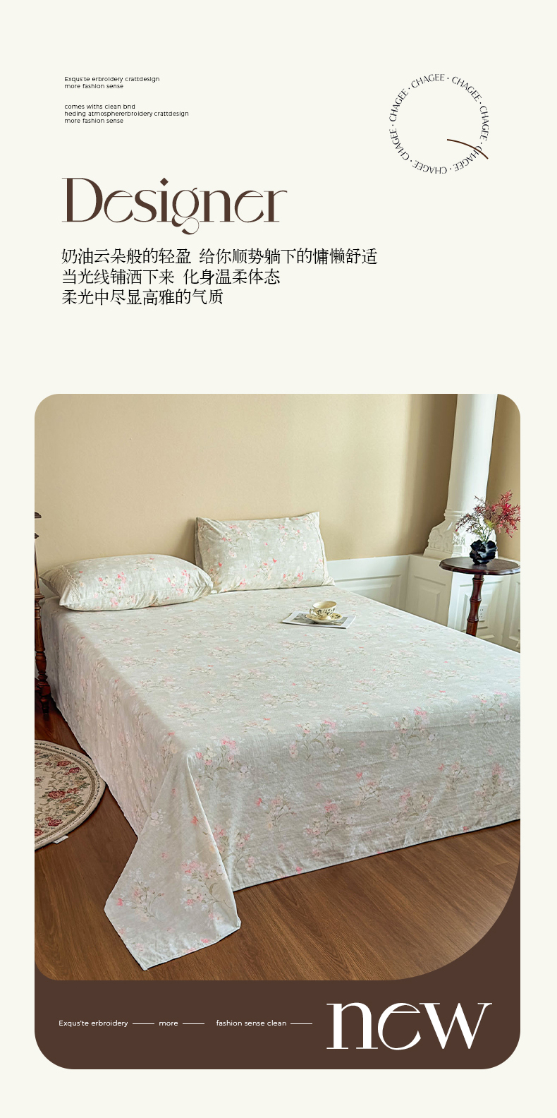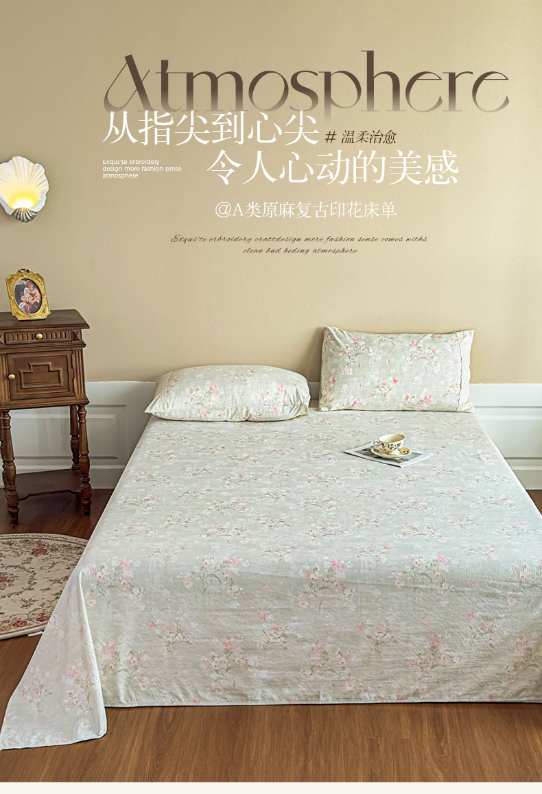 丝芙妮家居(原乐视家纺) 2025新款全棉纯棉蕾丝花边原麻单件床单单品床单 岁月留声