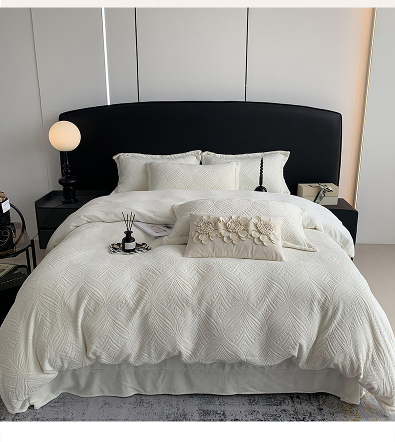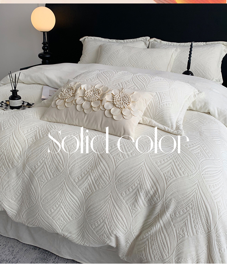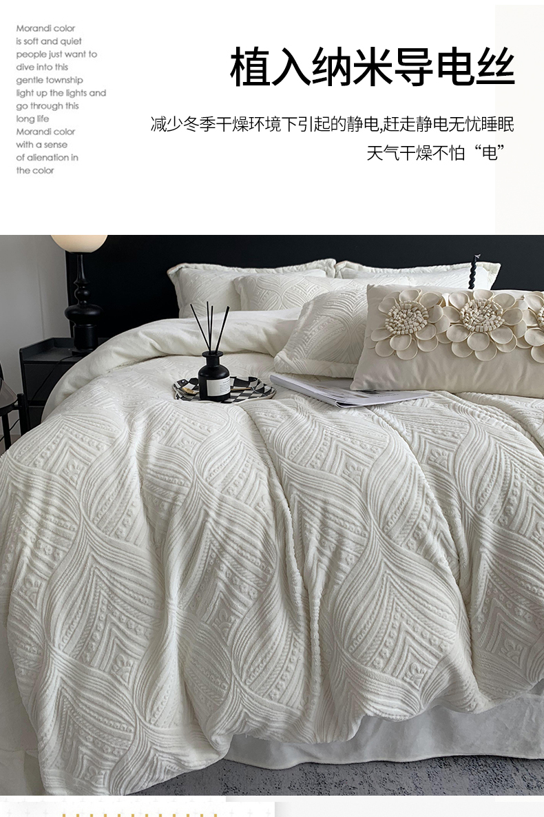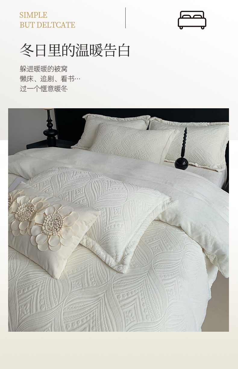 奈萝家纺 2025新款雕花绒高克重牛奶绒四件套-流年系列 流年耀白