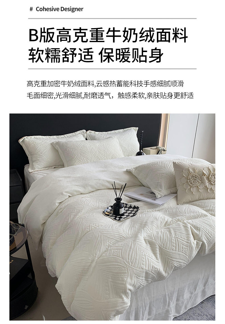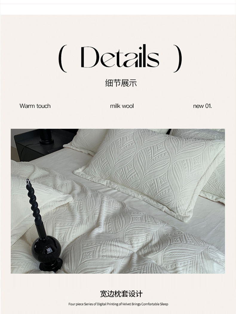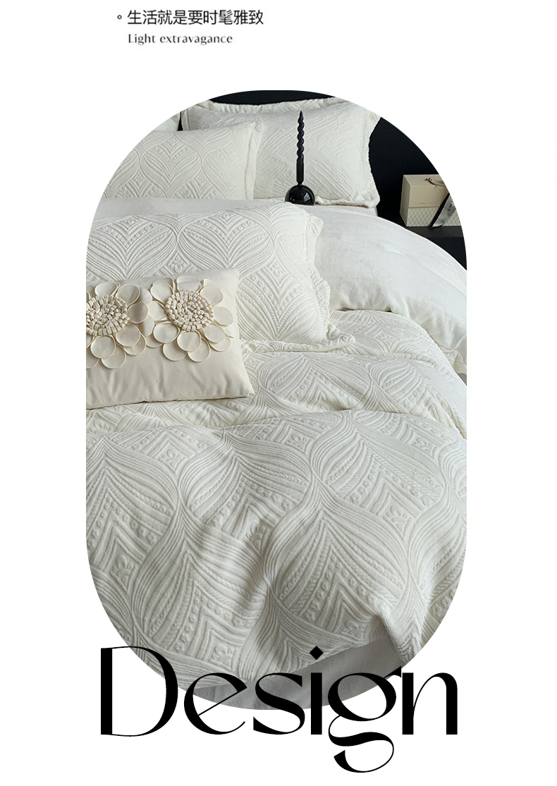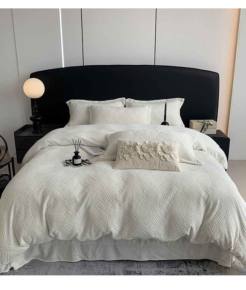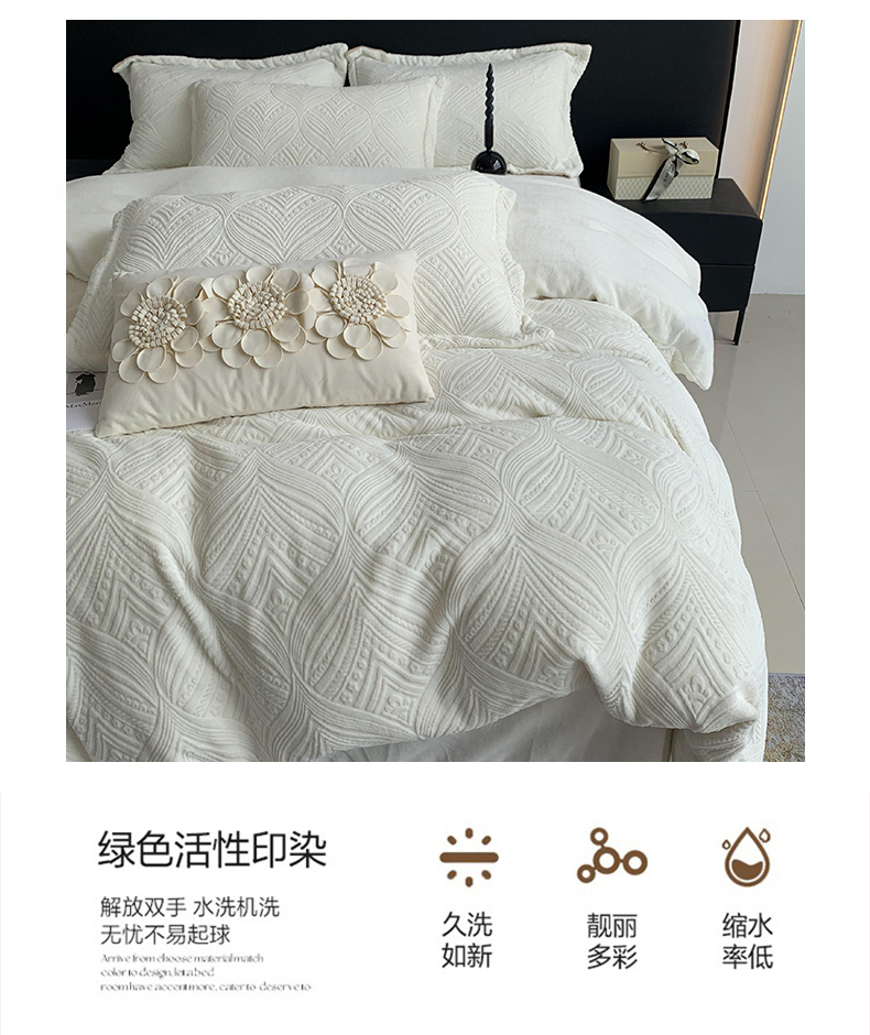 奈萝家纺 2025新款雕花绒高克重牛奶绒四件套-流年系列 流年耀白