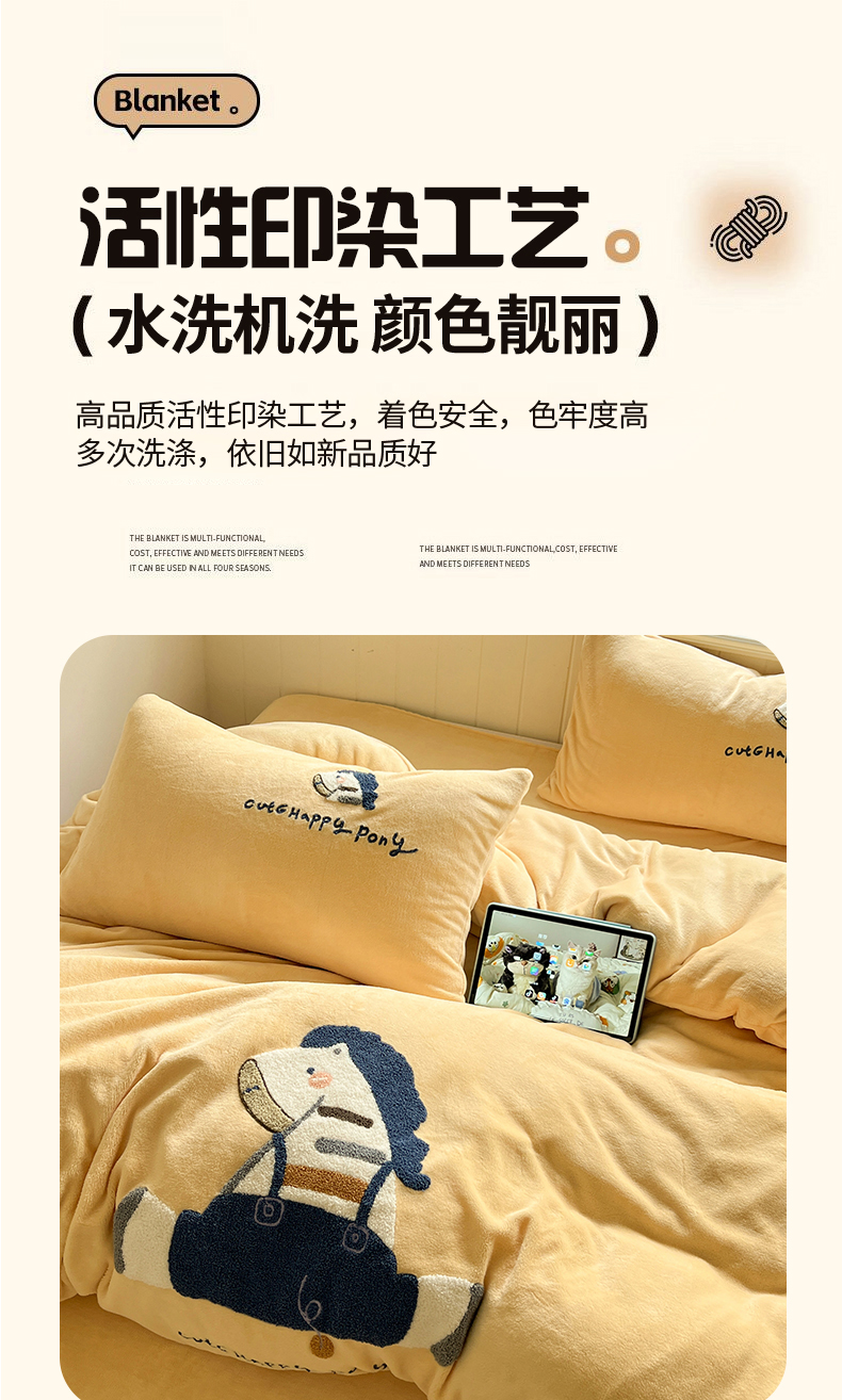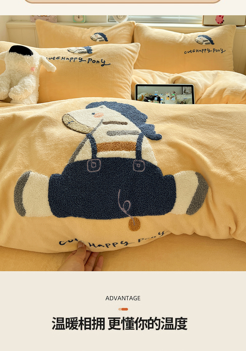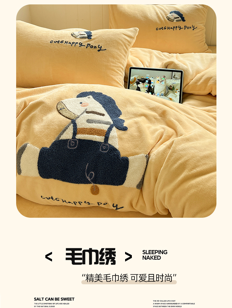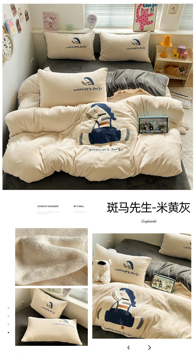 (总)凯洛奇 2025新款牛奶绒毛巾绣系列四件套-斑马先生(提供买家秀),斑马先生-咖啡,斑马先生-柠檬黄,斑马先生-米黄咖,斑马先生-天空蓝,斑马先生-米黄灰
